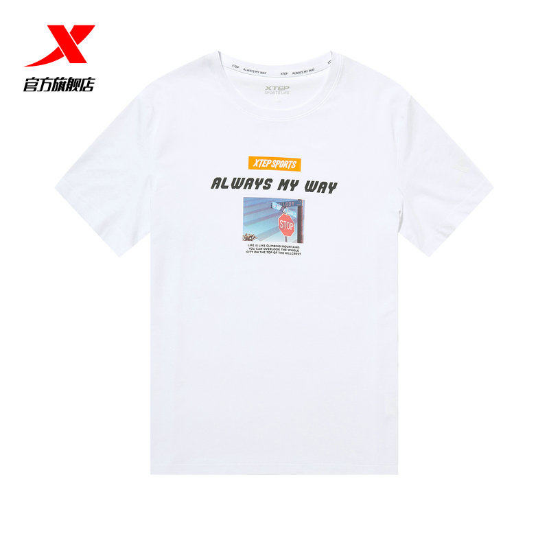 Xtep, летняя спортивная футболка с коротким рукавом для отдыха с круглым воротником, свободный крой