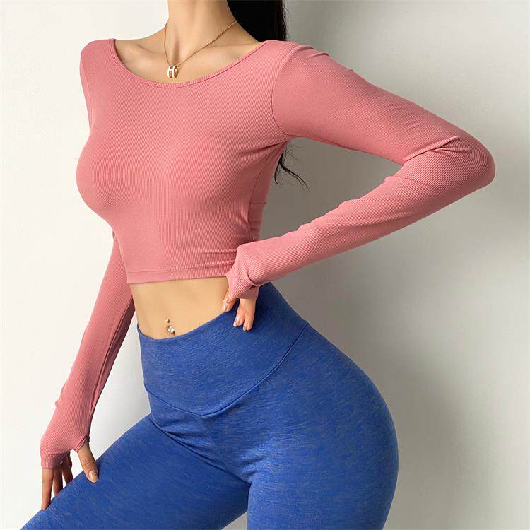 Весенняя сексуальная одежда для йоги, лонгслив, топ с чашечками, эластичный спортивный костюм, футболка для спортзала, в обтяжку