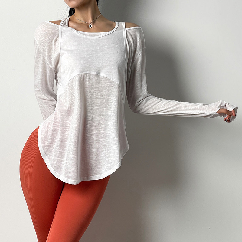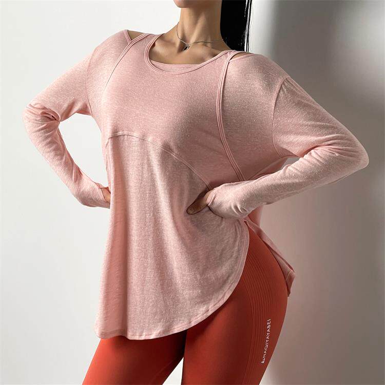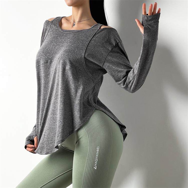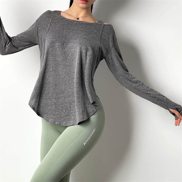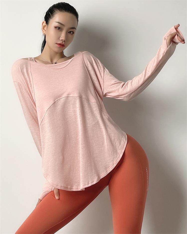 Спортивный лонгслив для спортзала, футболка, дышащая одежда для йоги, осенний, свободный крой, для бега
