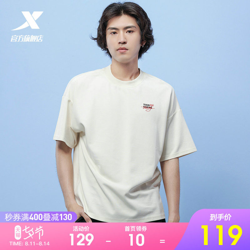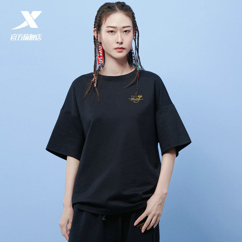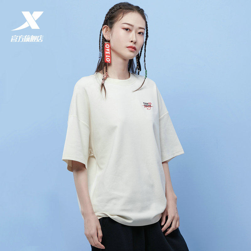 Xtep, футболка подходит для мужчин и женщин, летние поделки из бумаги для отдыха, короткий рукав, сезон 2021, оверсайз