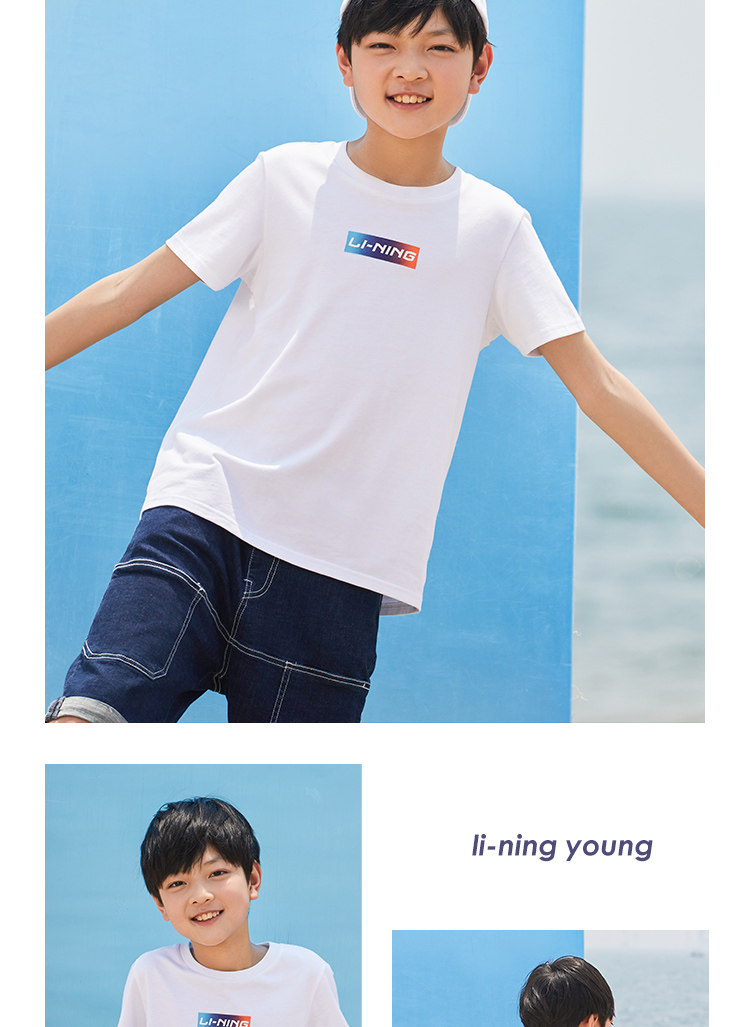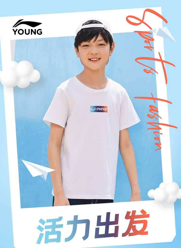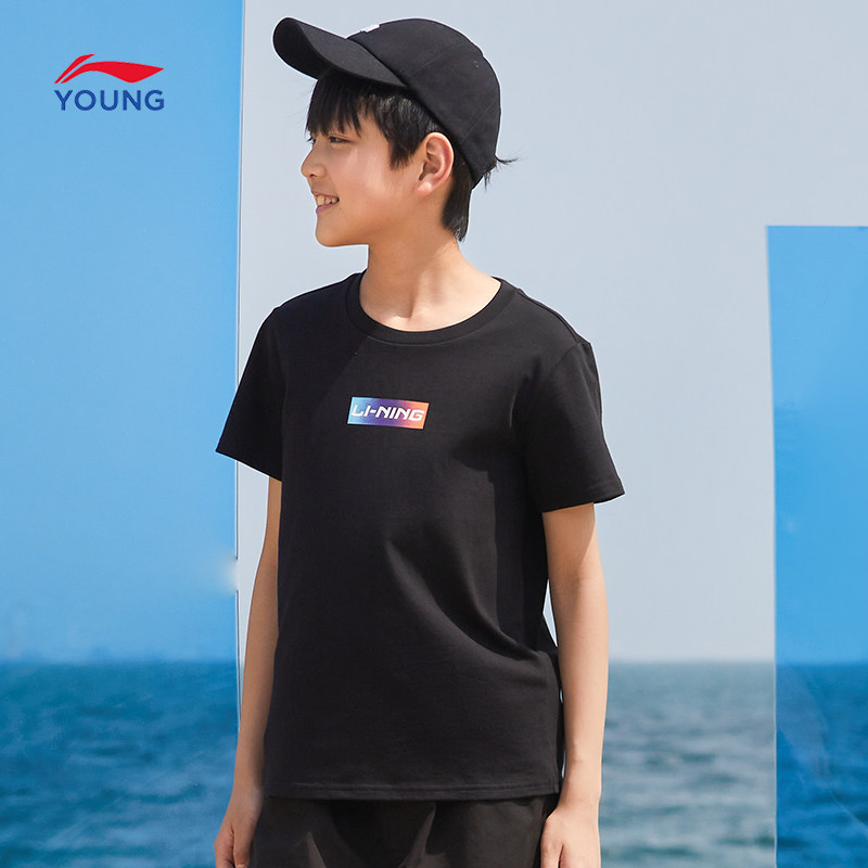 Li Ning, спортивная модная футболка с коротким рукавом, летний спортивный костюм с круглым воротником, детская одежда, подходит для подростков