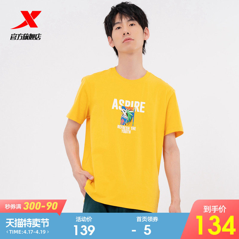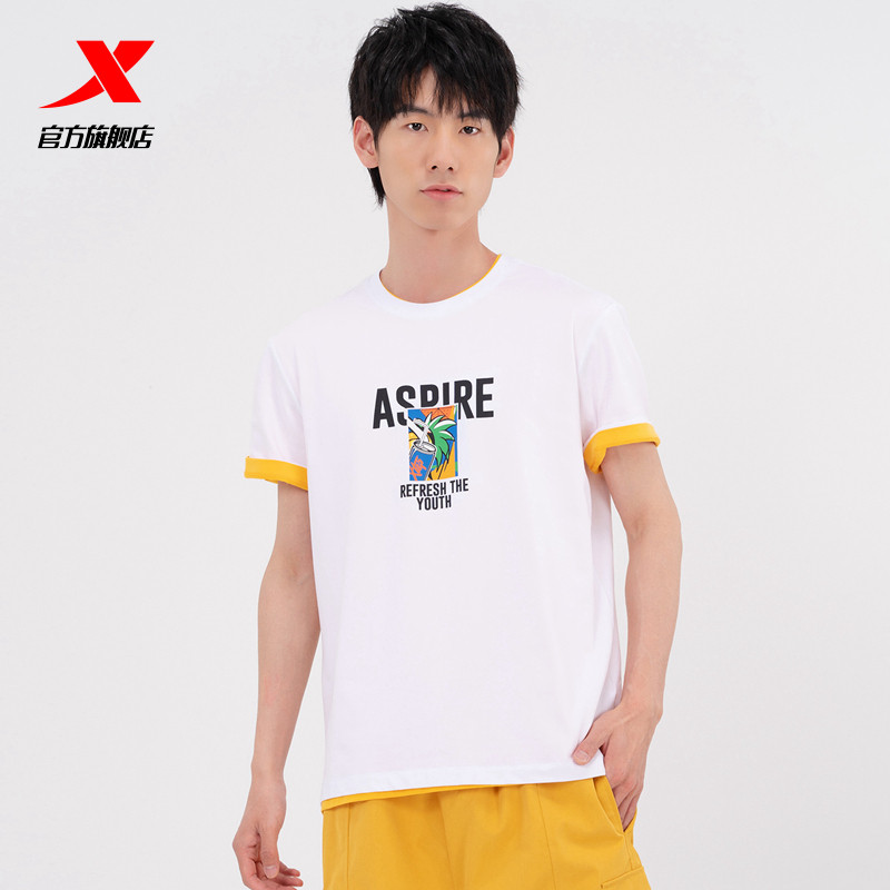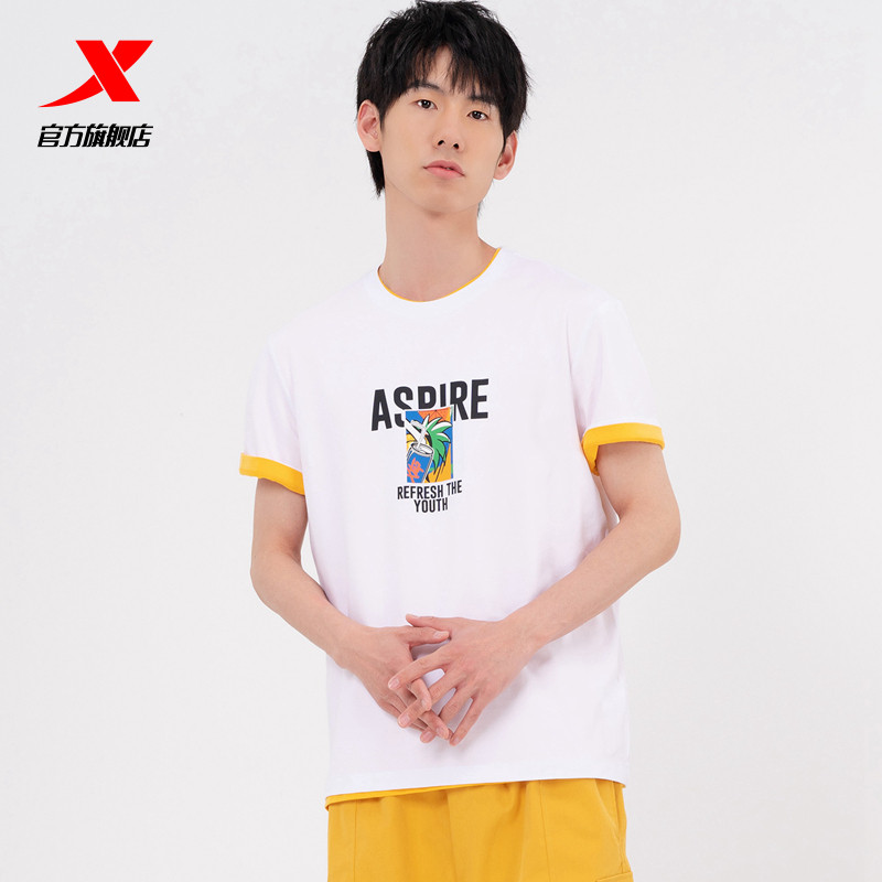 Xtep, летняя трендовая спортивная базовая футболка с коротким рукавом, сезон 2021