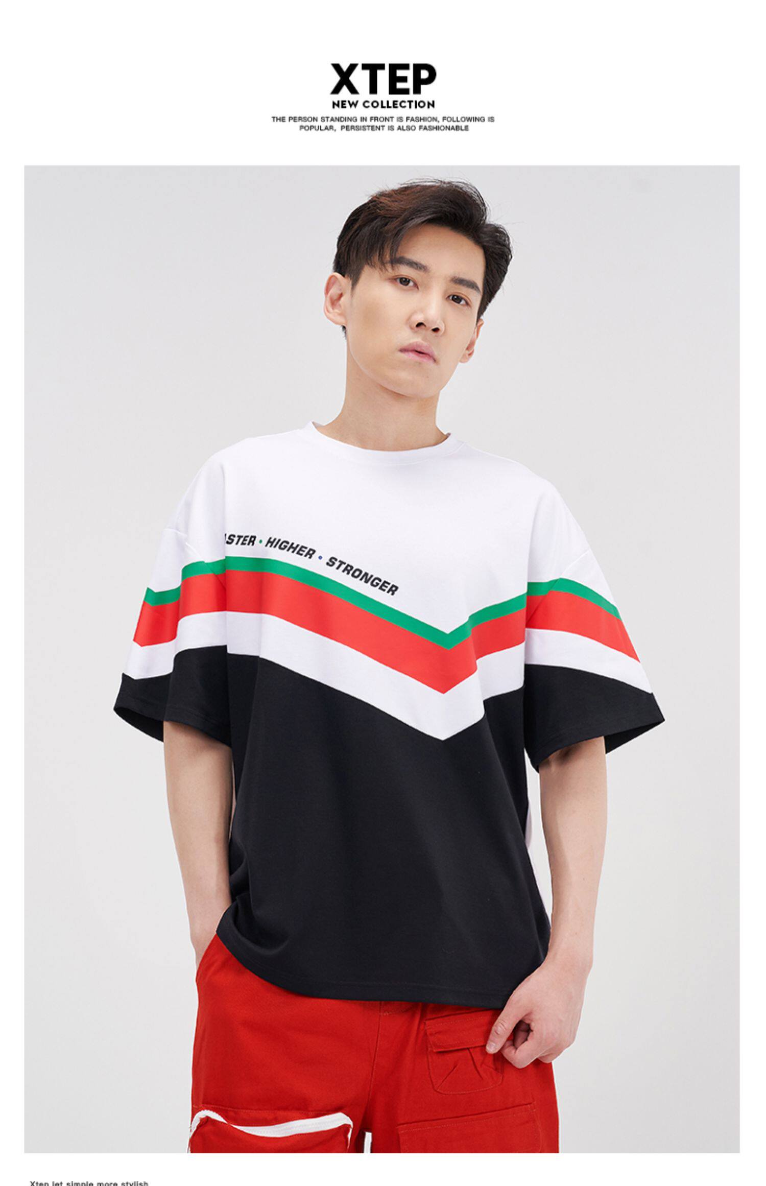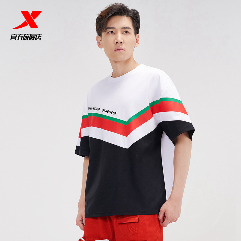 Xtep, трендовая футболка с коротким рукавом, летний спортивный костюм, оверсайз