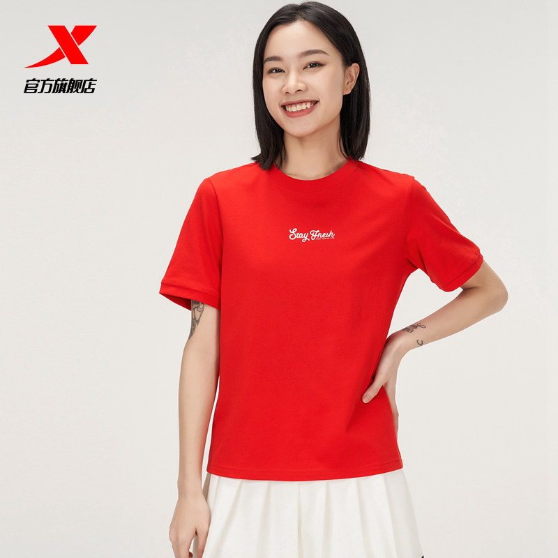 Xtep, летняя хлопковая футболка для отдыха, короткий рукав, сезон 2021