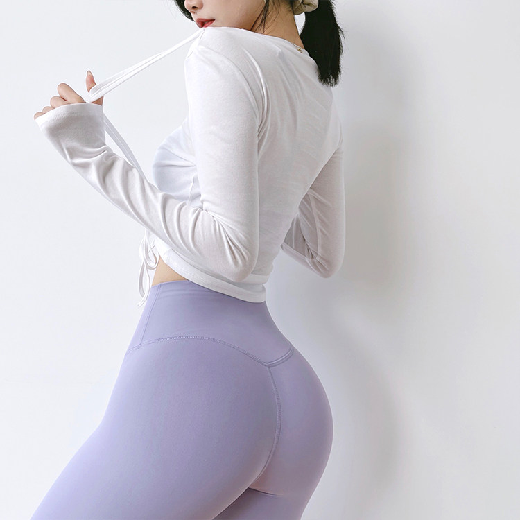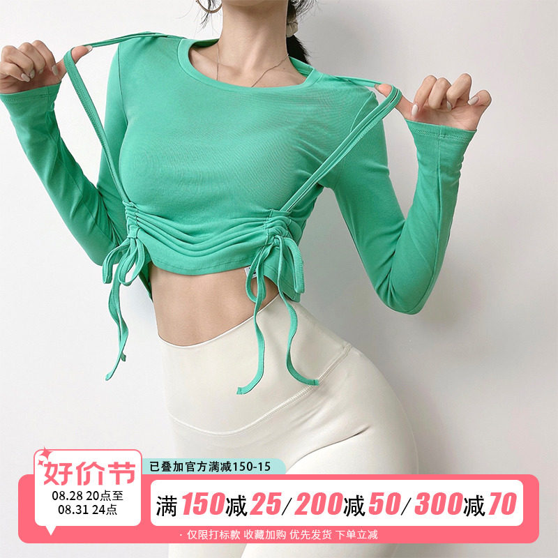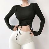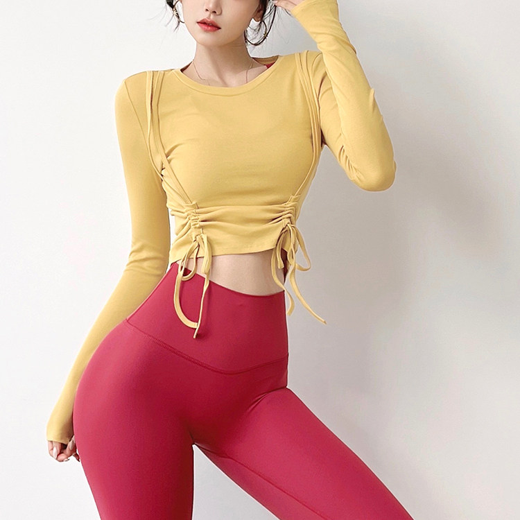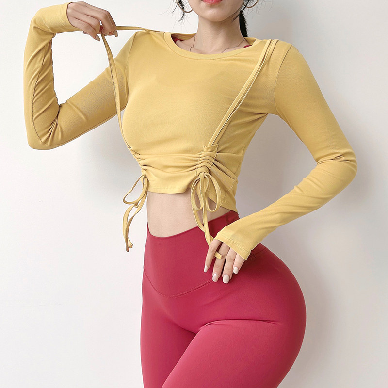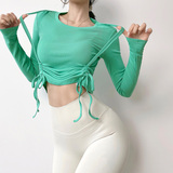Одежда для йоги с круглым воротником, быстросохнущий спортивный лонгслив для отдыха для спортзала, на шнурках, в обтяжку