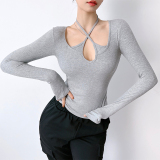 Сексуальный быстросохнущий лонгслив, дышащая приталенная одежда для йоги, спортивный корсет для тренировок