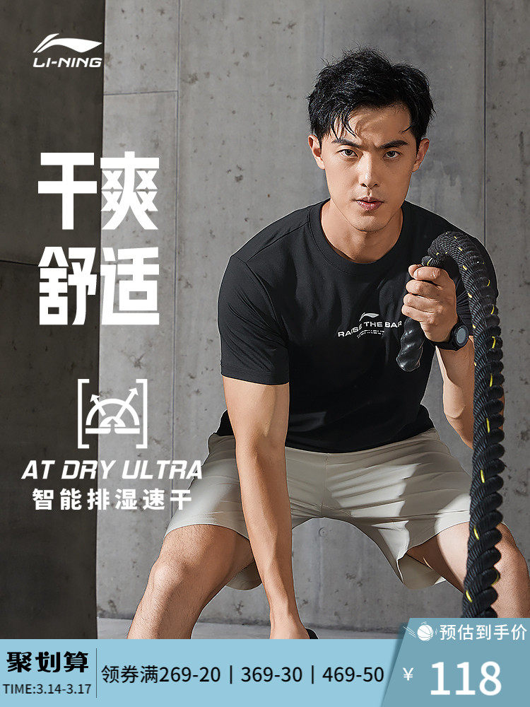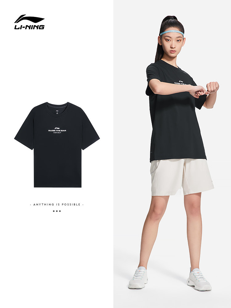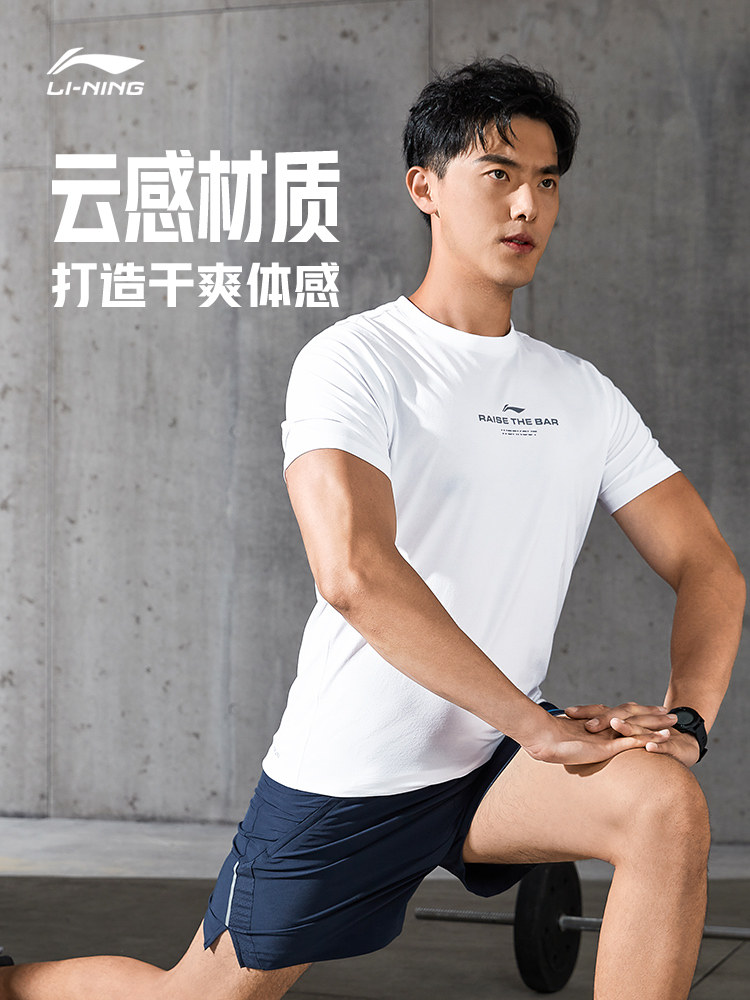 Li Ning, быстросохнущая летняя спортивная дышащая футболка для влюбленных для спортзала для тренировок, короткий рукав, для бега