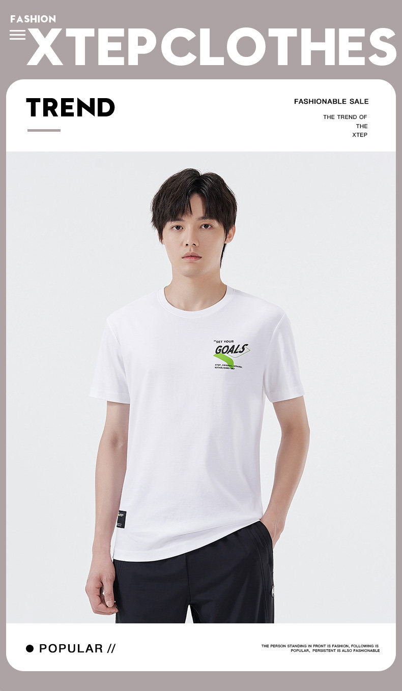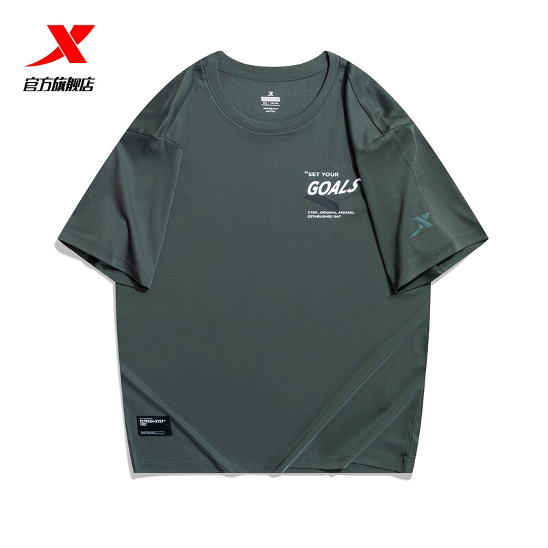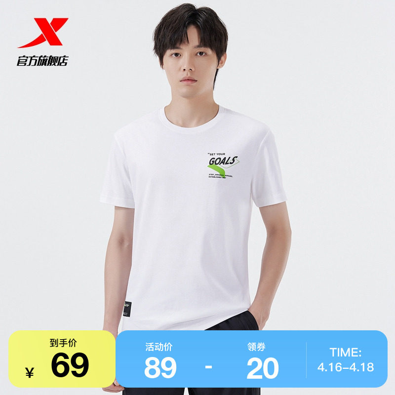 Xtep, спортивная дышащая хлопковая футболка для отдыха, короткий рукав, для бега