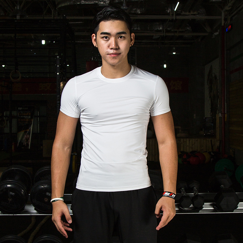 Спортивная летняя тонкая приталенная дышащая белая быстросохнущая футболка с коротким рукавом для спортзала для тренировок, круглый воротник, для бега
