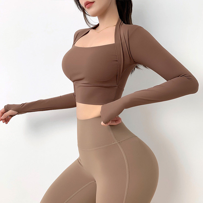 Одежда для йоги, лонгслив, спортивный топ с чашечками для спортзала, в обтяжку