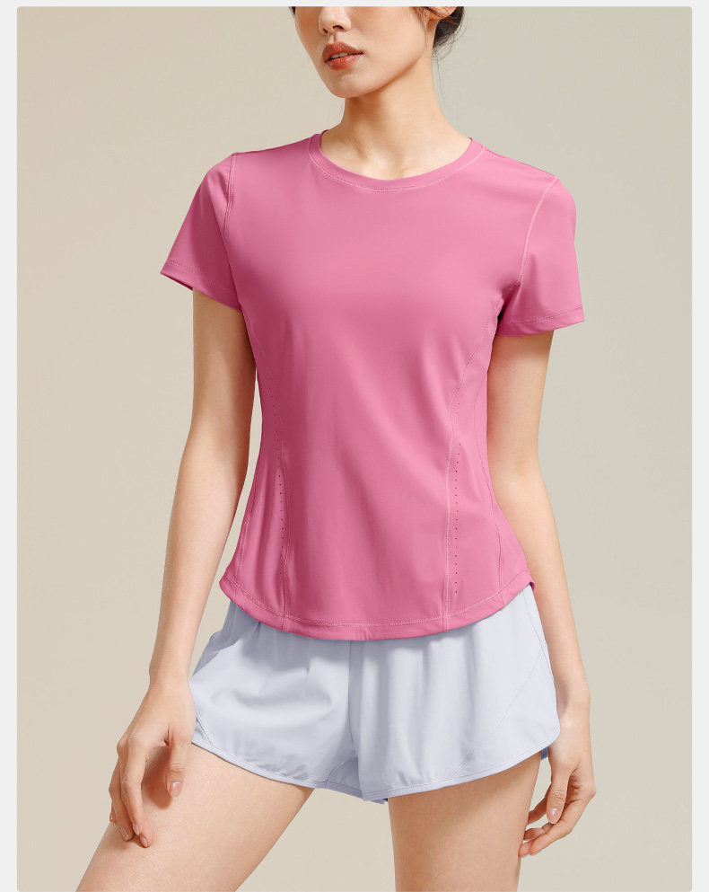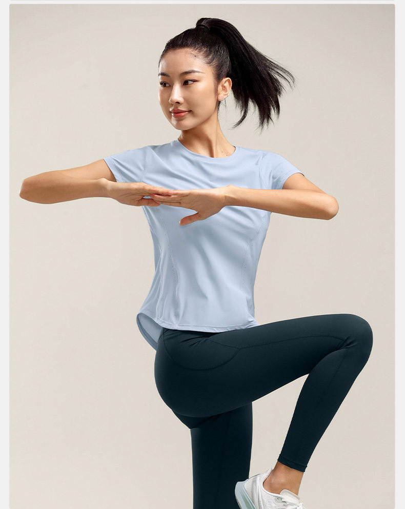 Быстросохнущая спортивная одежда для йоги для спортзала для тренировок, летняя футболка, защита от солнца, короткий рукав, для бега