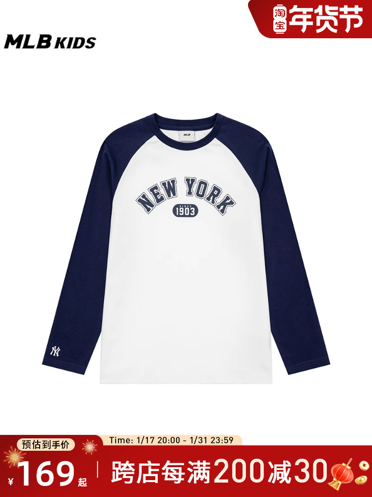 MLB, летний спортивный лонгслив с круглым воротником для мальчиков, футболка, в западном стиле