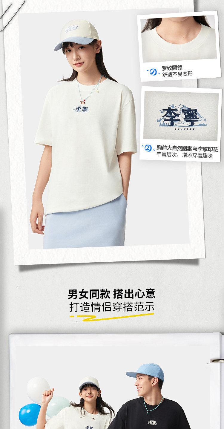 Li Ning, летняя мужская белая цветная шелковая спортивная футболка с коротким рукавом для влюбленных, свободный крой