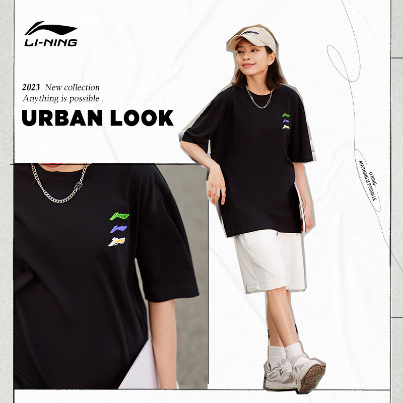 Li Ning, спортивная футболка с коротким рукавом, модный летний спортивный костюм с круглым воротником, коллекция 2023