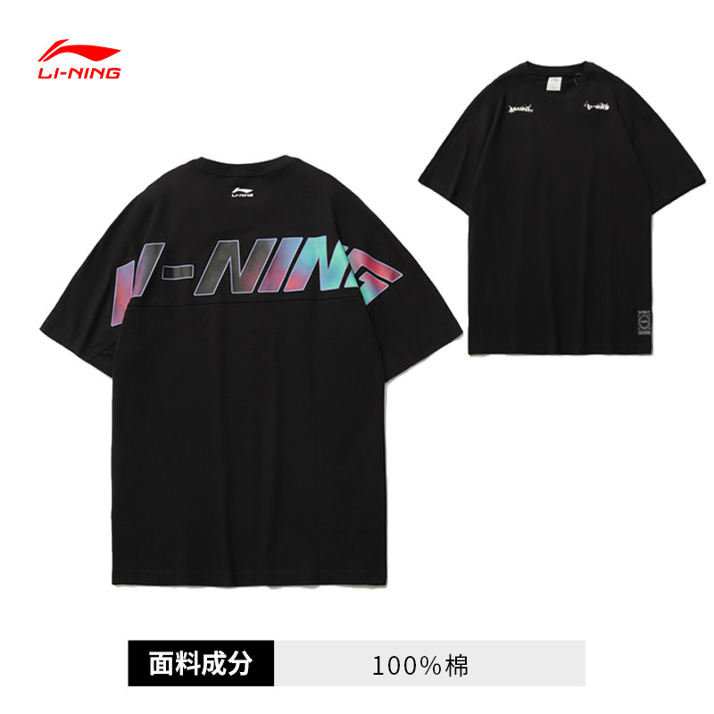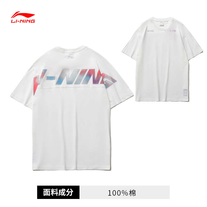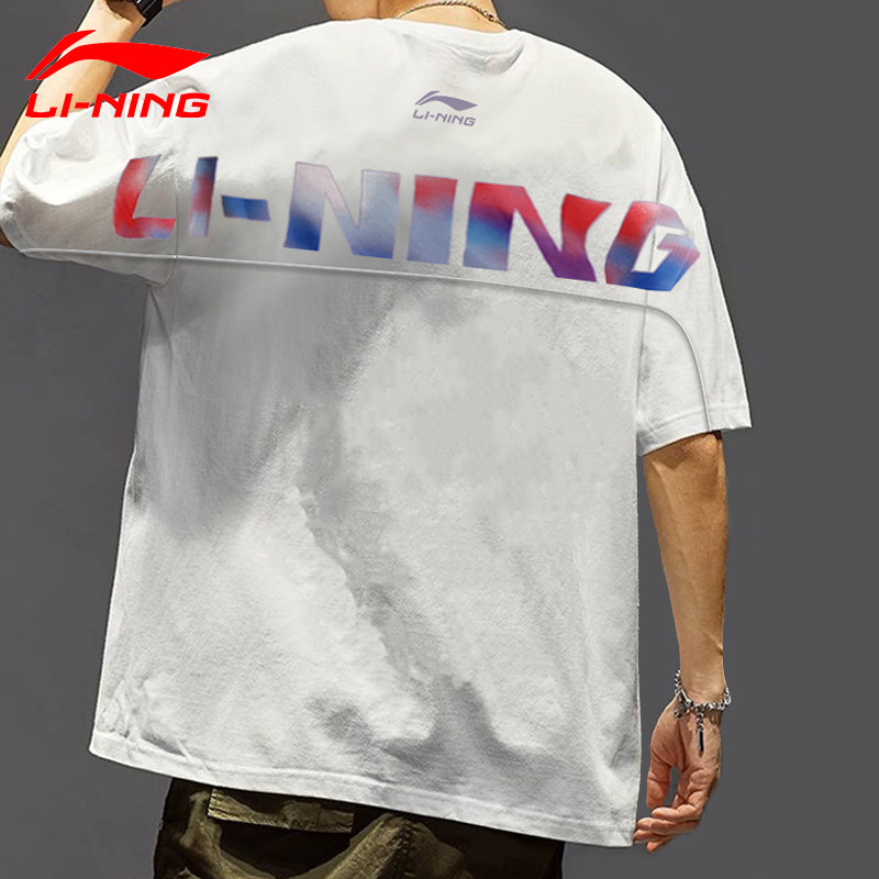 Li Ning, летняя хлопковая мужская трендовая футболка с круглым воротником, короткий рукав