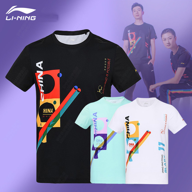 Li Ning, дышащая футболка с коротким рукавом подходит для мужчин и женщин для настольного тенниса, летняя одежда для бадминтона, набивка пером