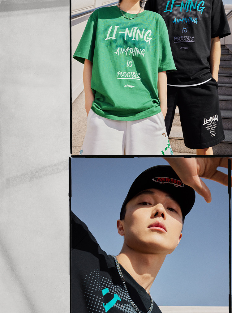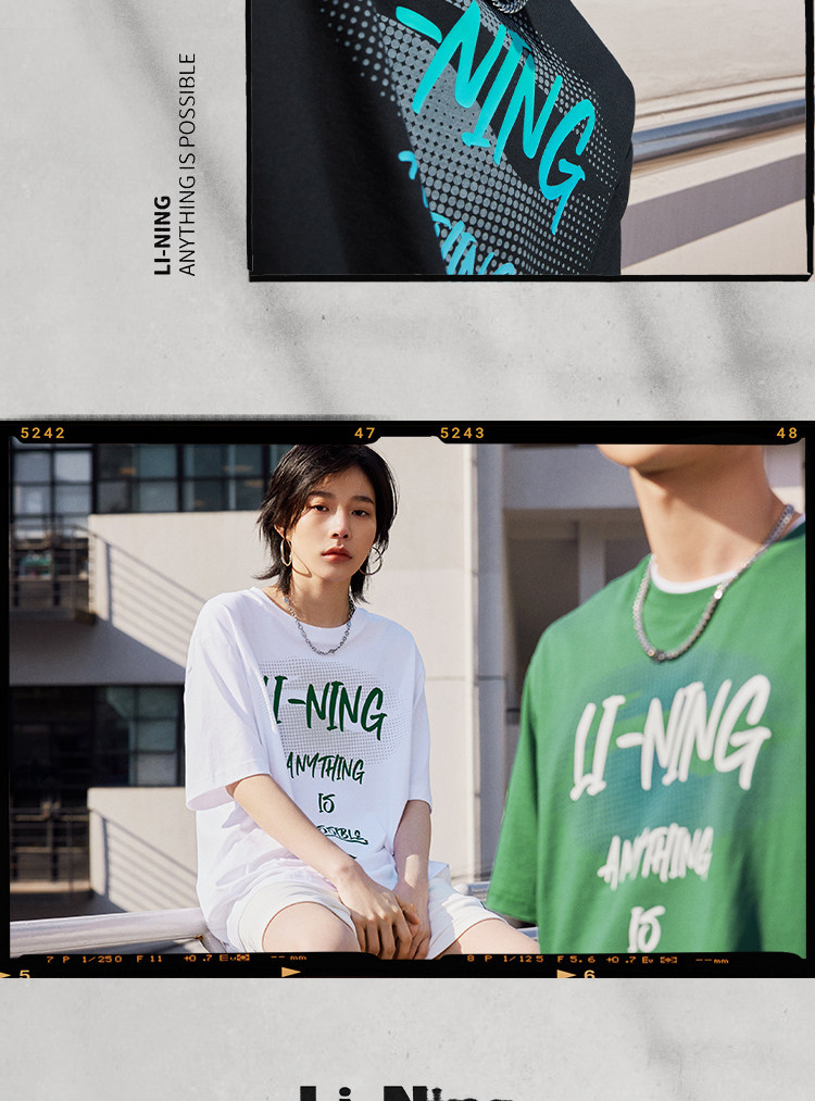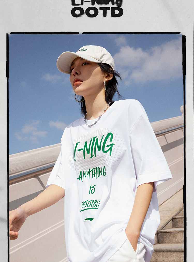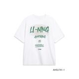Li Ning, летняя спортивная белая хлопковая футболка для влюбленных с круглым воротником, короткий рукав, с рукавом