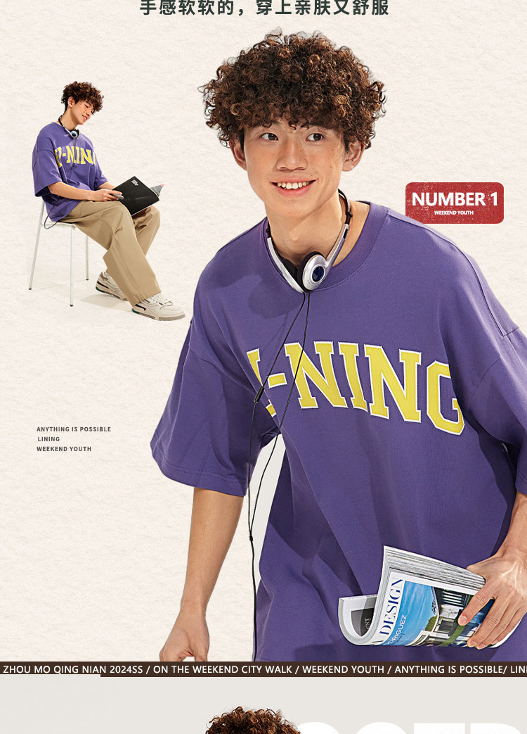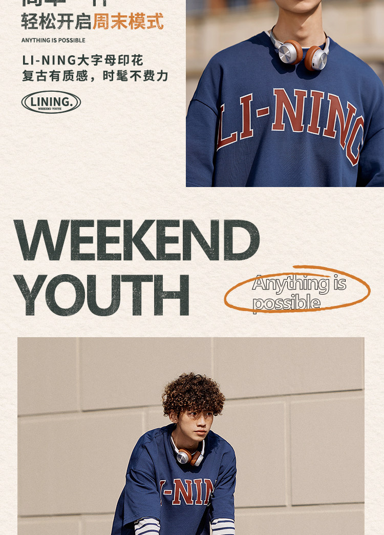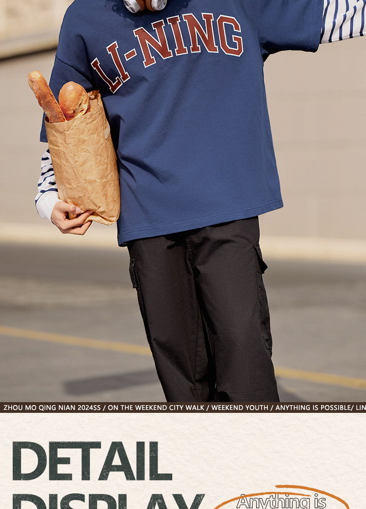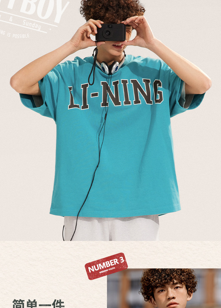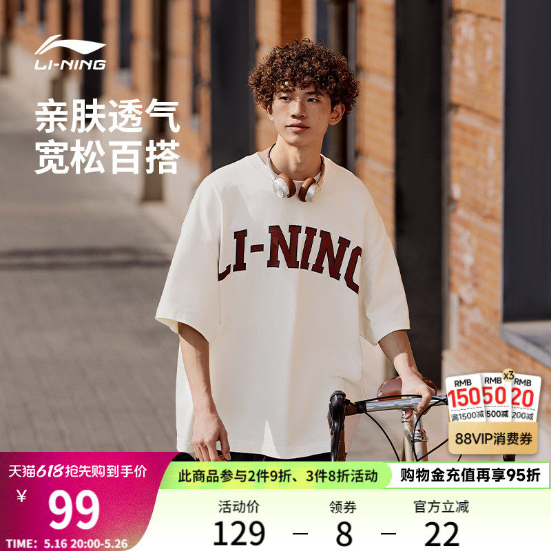 Li Ning, летняя ретро спортивная футболка для влюбленных с круглым воротником, короткий рукав, свободный крой