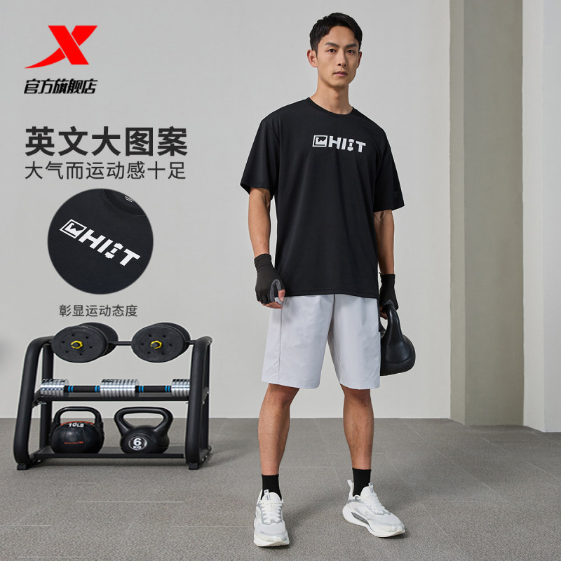 Xtep, летняя спортивная быстросохнущая дышащая футболка для спортзала для отдыха, короткий рукав, в американском стиле, свободный крой