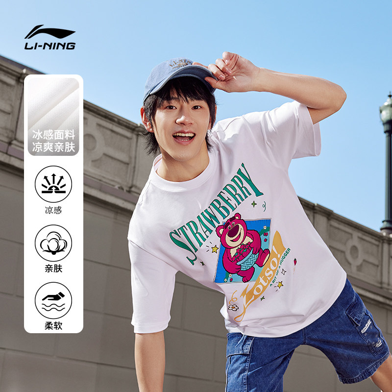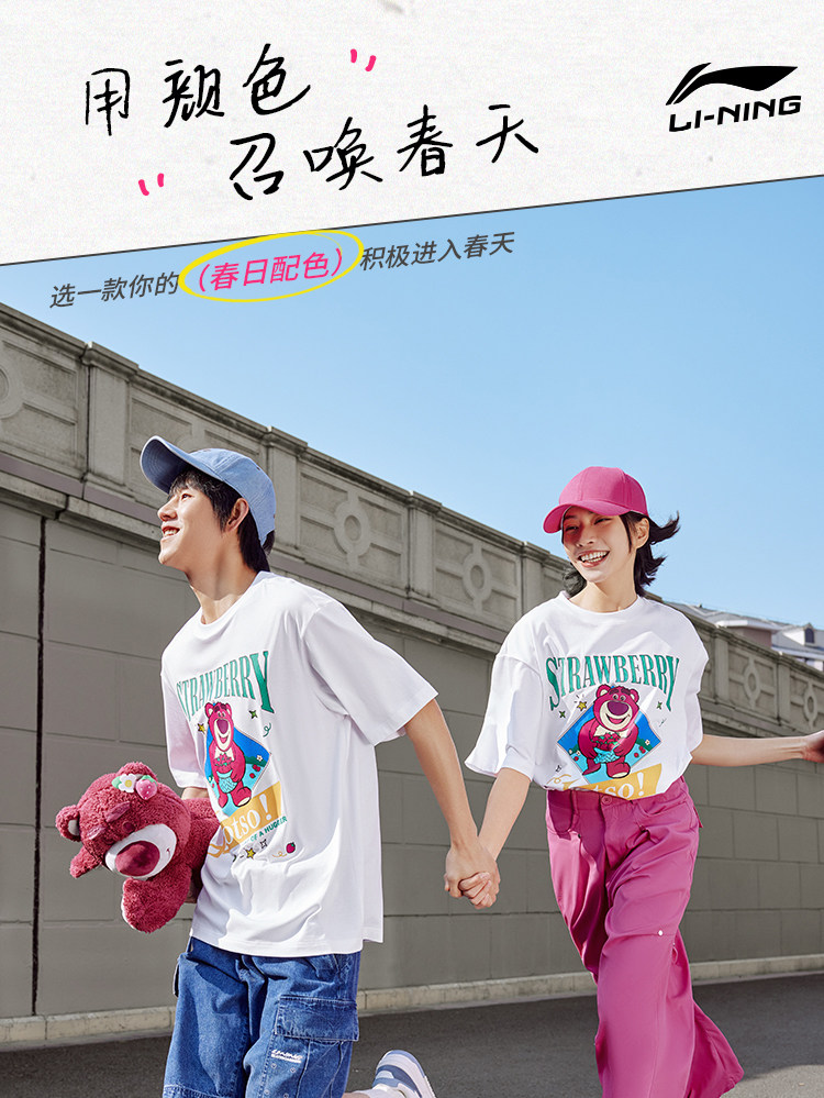 Li Ning, клубника, летняя спортивная футболка с круглым воротником для влюбленных, короткий рукав