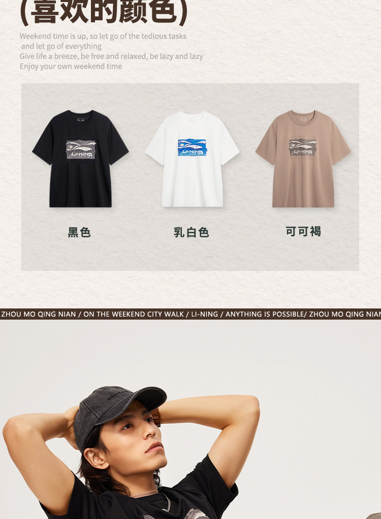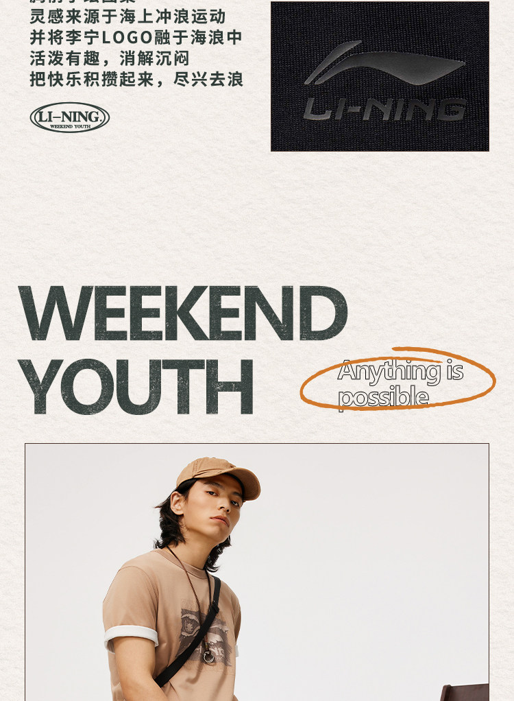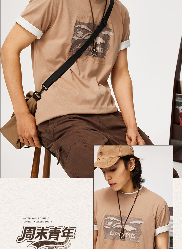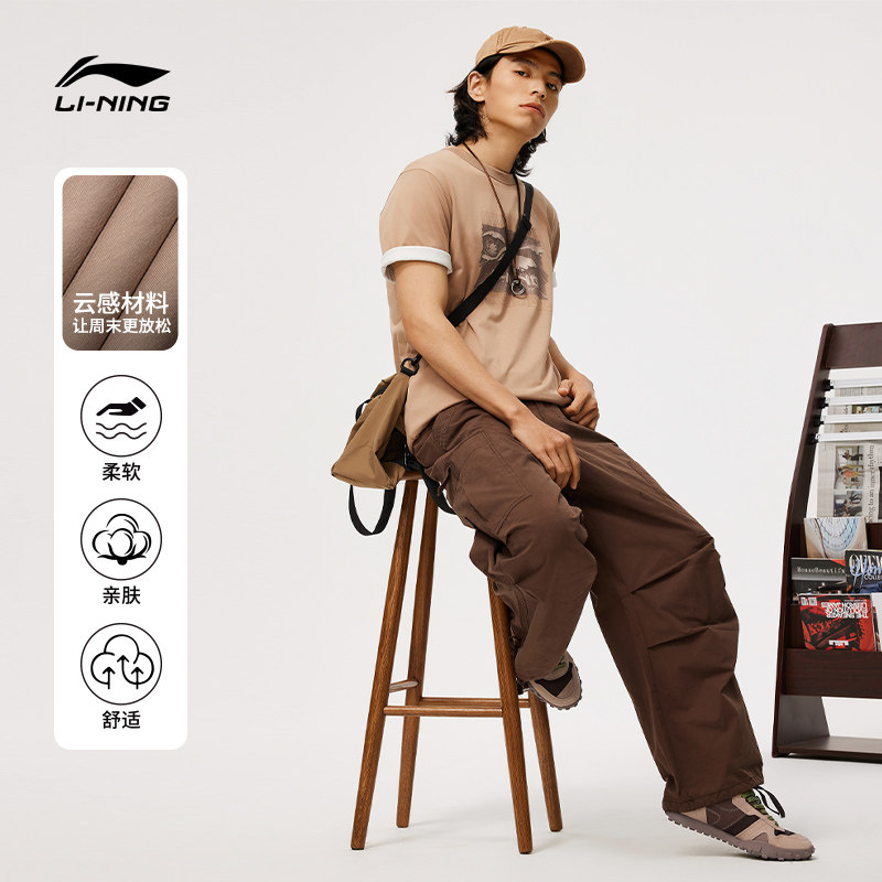 Li Ning, летняя спортивная футболка для отдыха с круглым воротником, короткий рукав, впитывает пот и запах