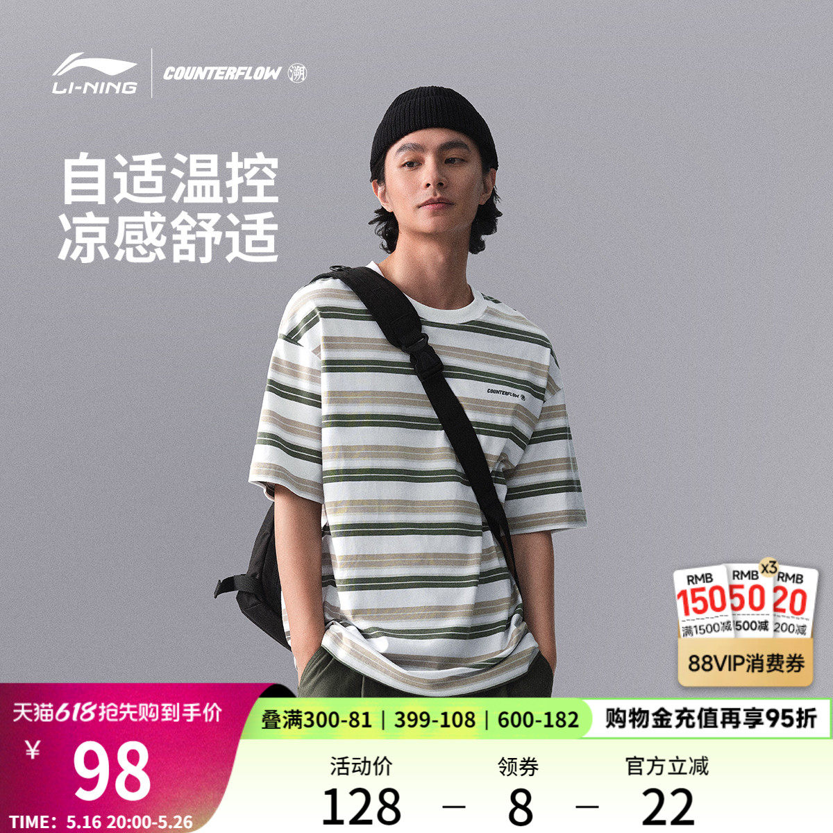 Li Ning, комфортная антибактериальная футболка с коротким рукавом, быстросохнущий спортивный костюм, свободный крой