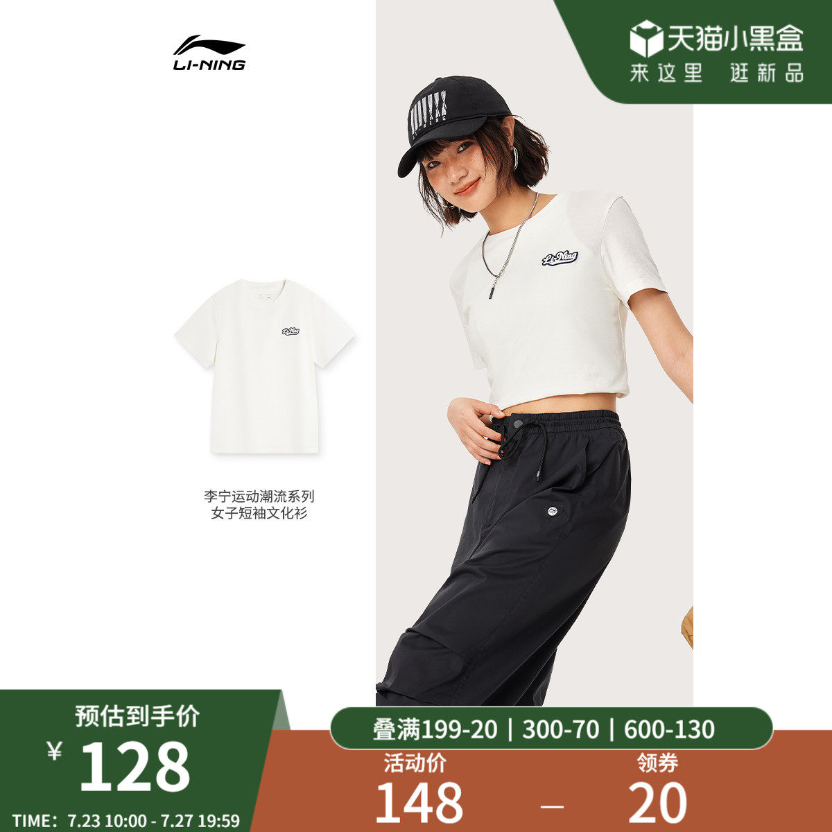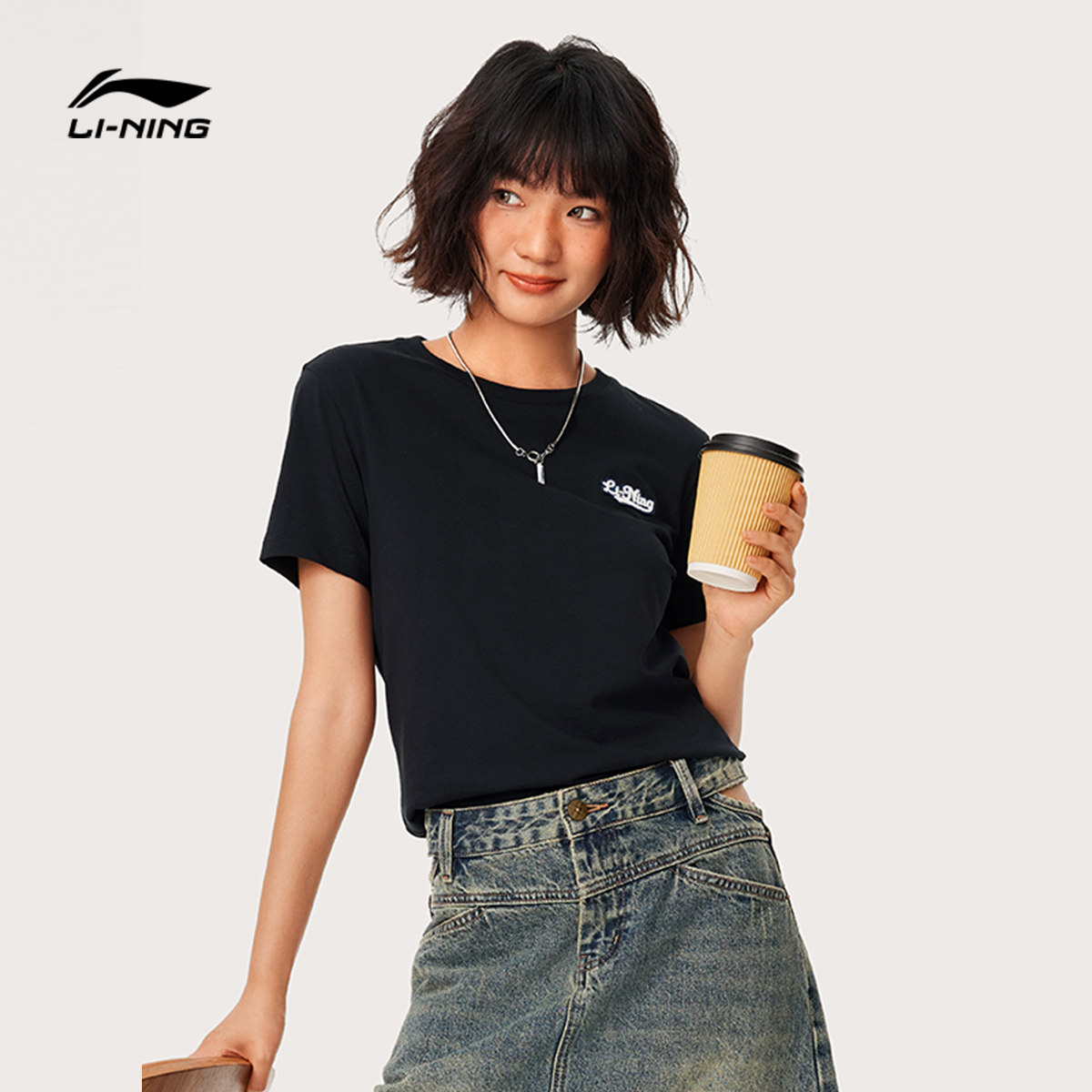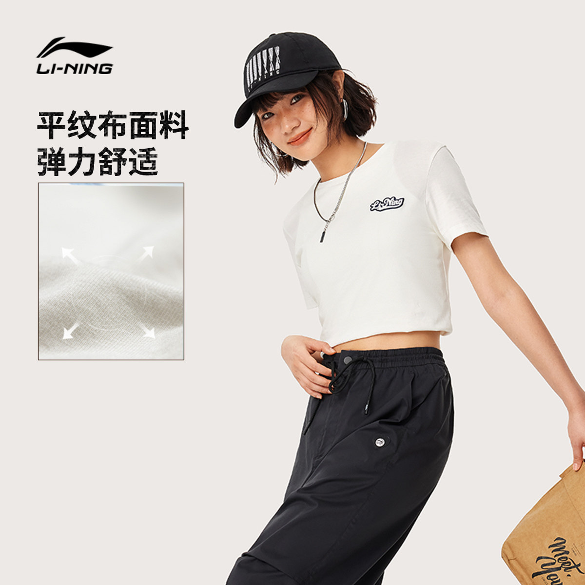 Li Ning, летняя спортивная хлопковая футболка для отдыха с круглым воротником, короткий рукав