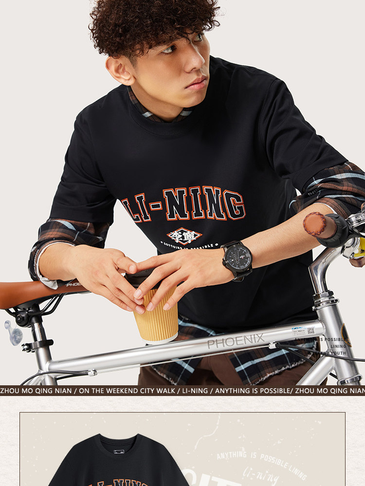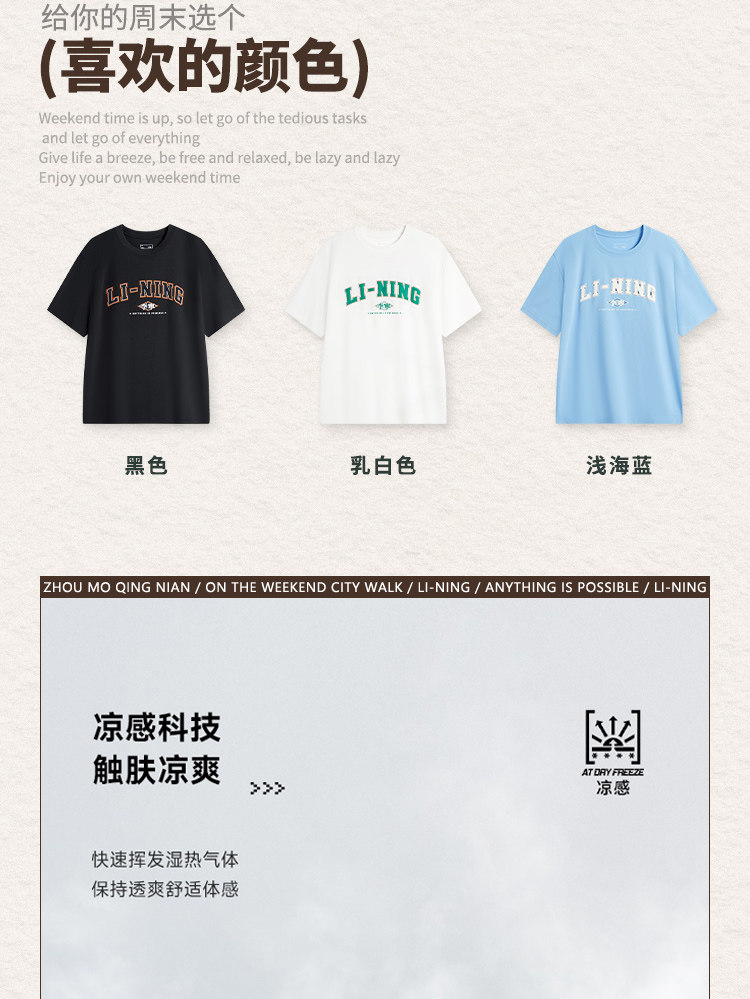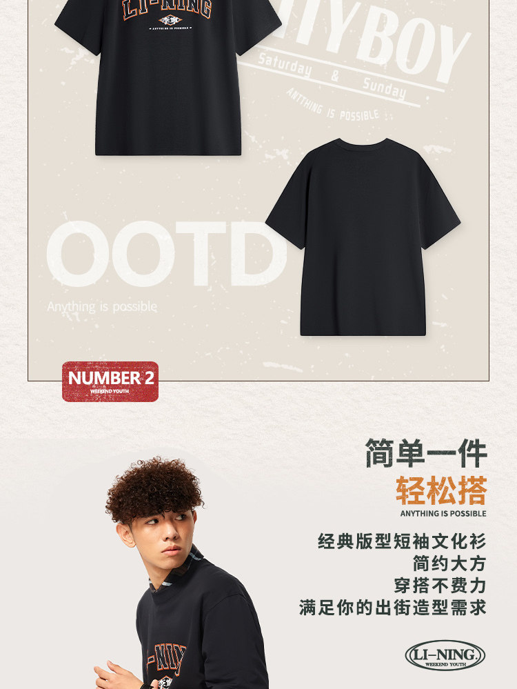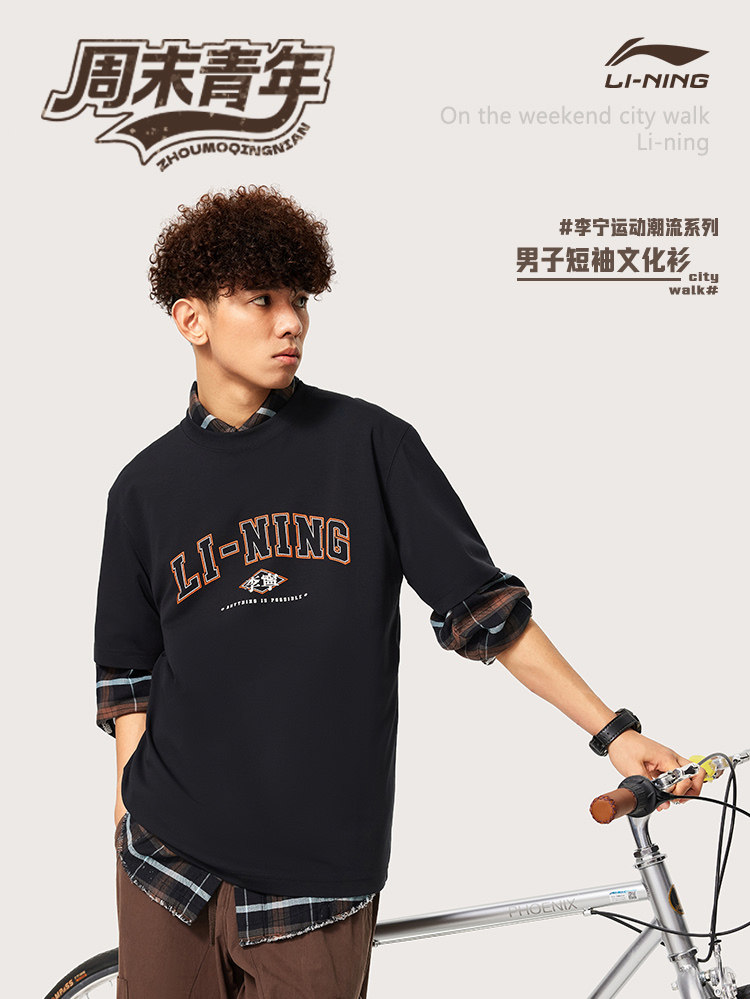 Li Ning, спортивная трендовая футболка с коротким рукавом, комфортный быстросохнущий спортивный костюм