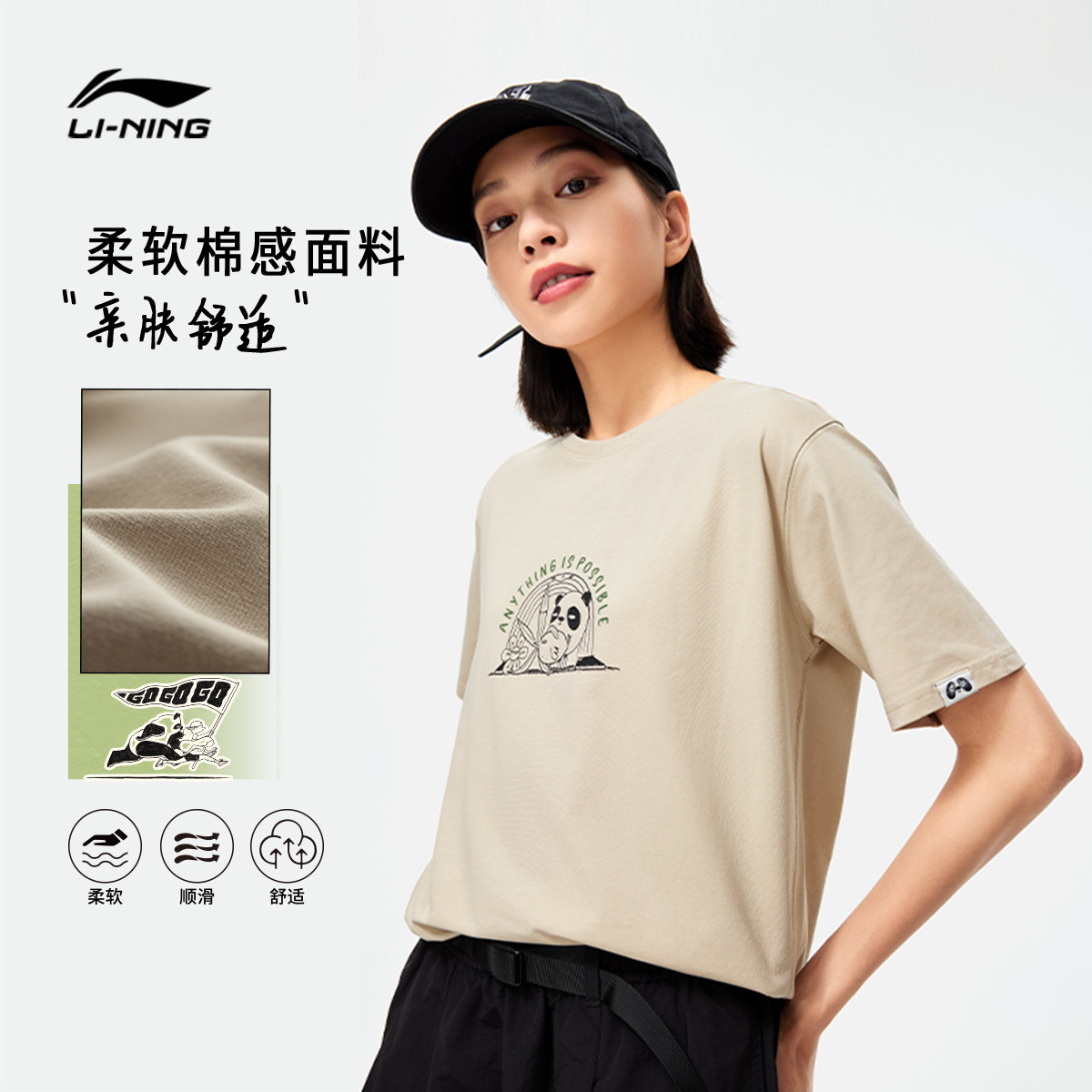 Li Ning, летняя спортивная футболка для отдыха, короткий рукав, оверсайз