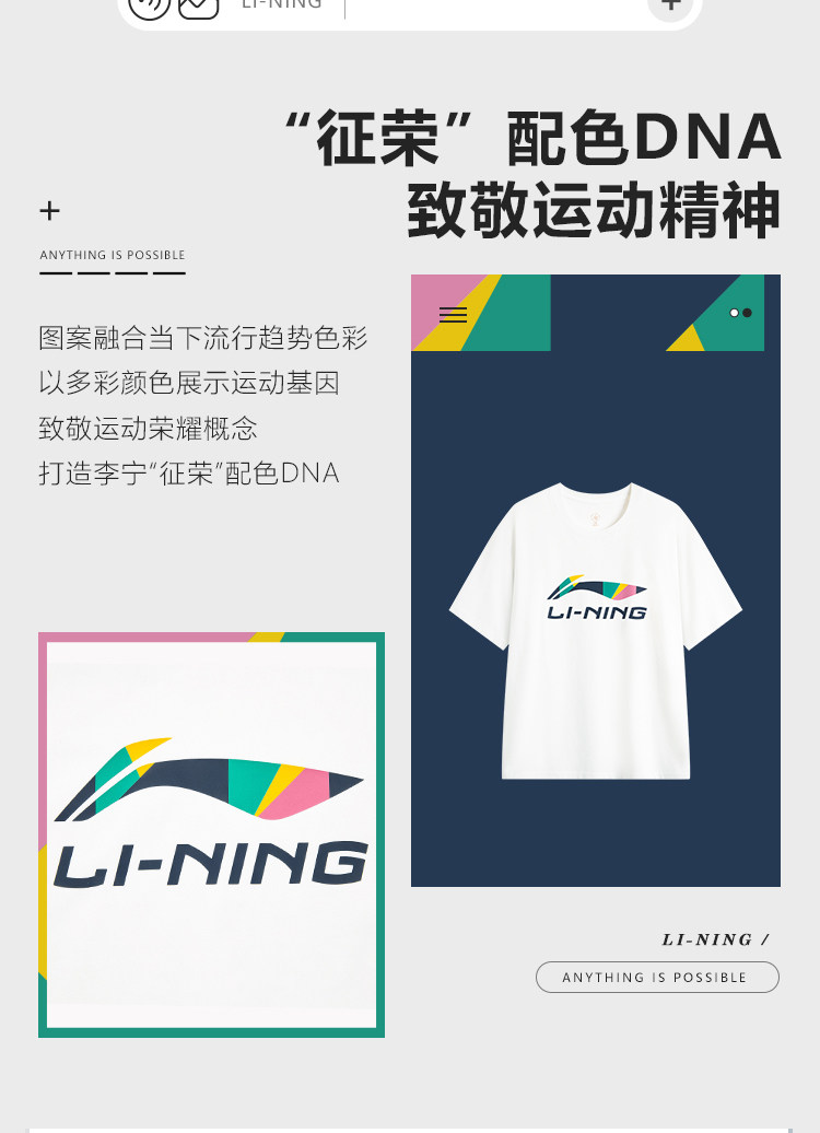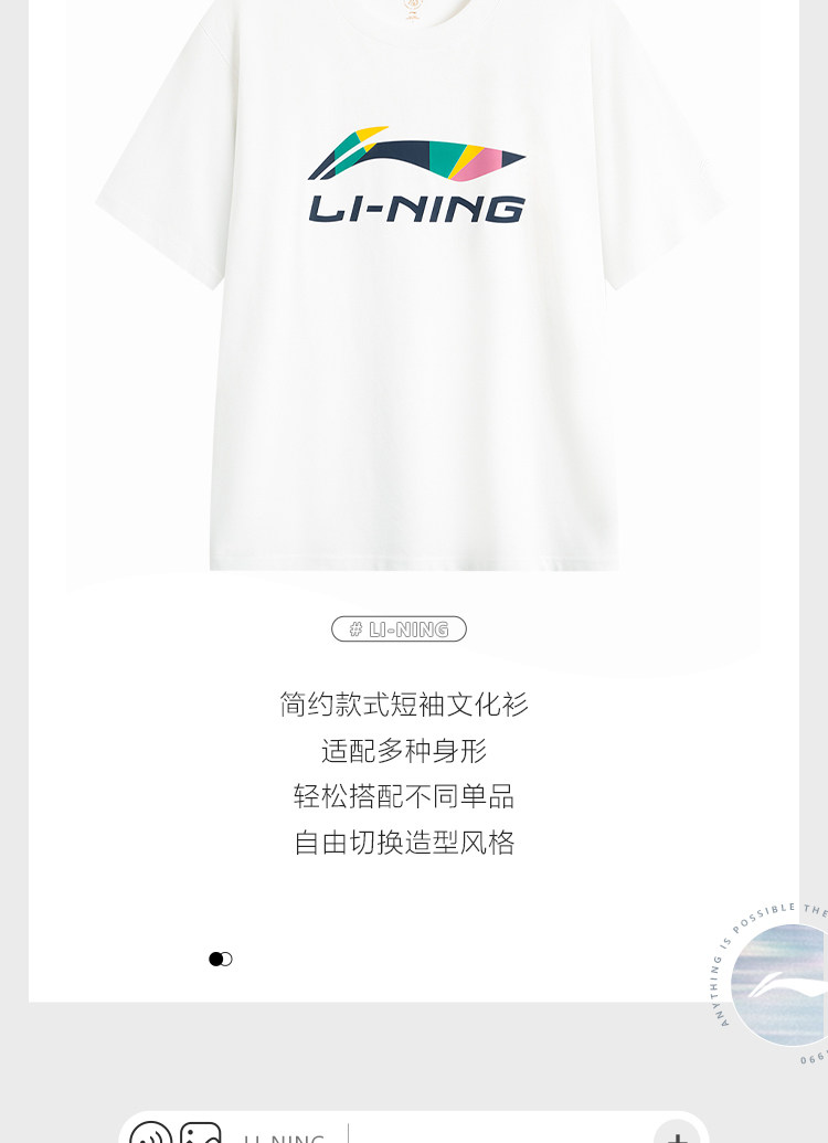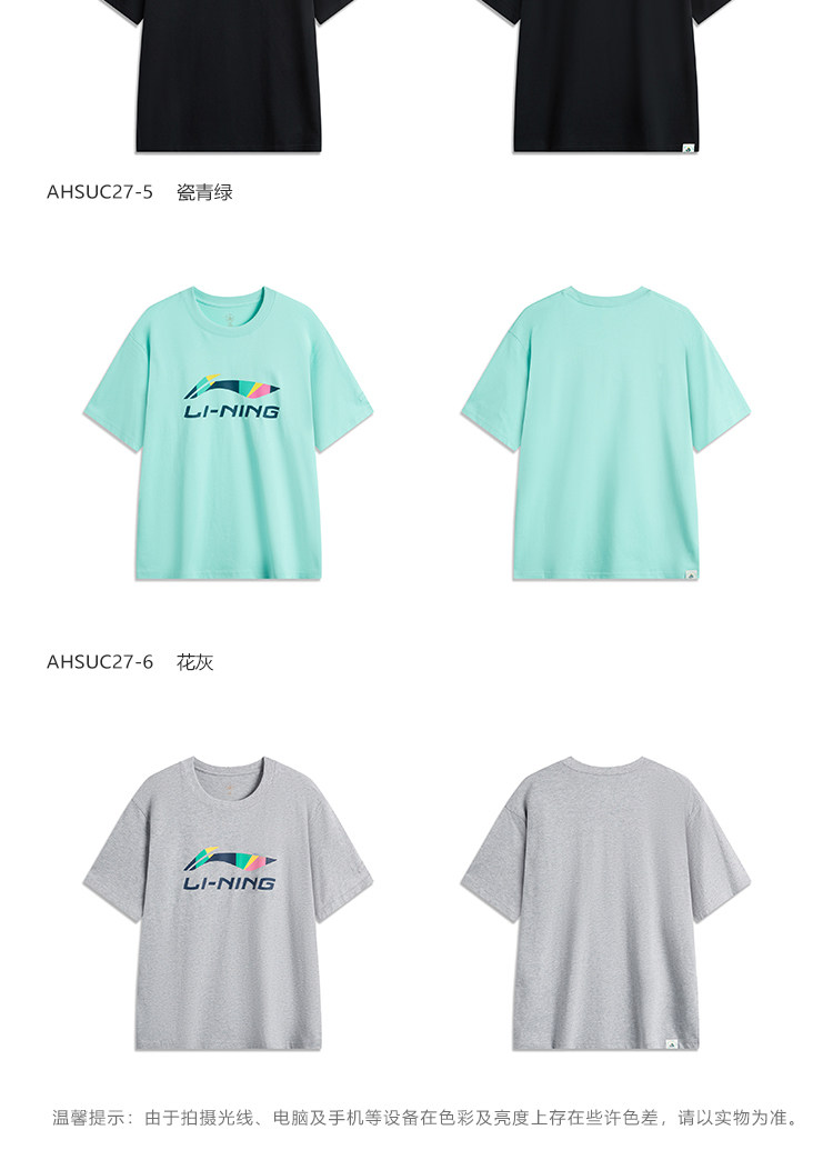 Li Ning, детская футболка подходит для мужчин и женщин для влюбленных, широкая цветовая палитра, короткий рукав