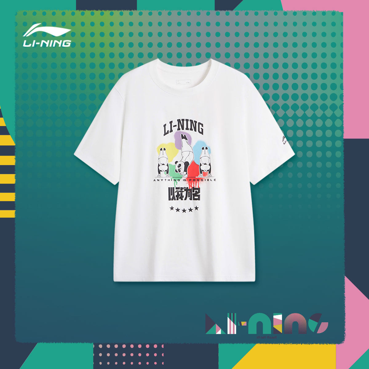Li Ning, летняя хлопковая футболка подходит для мужчин и женщин с круглым воротником, короткий рукав