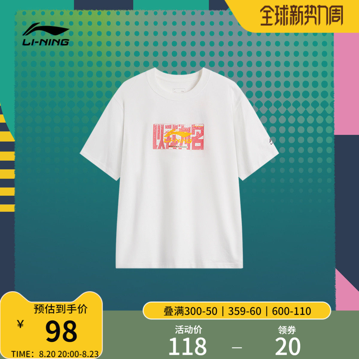 Li Ning, летняя спортивная футболка подходит для мужчин и женщин с круглым воротником, короткий рукав, с вышивкой