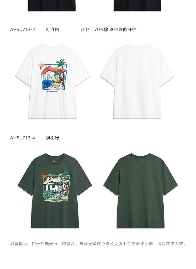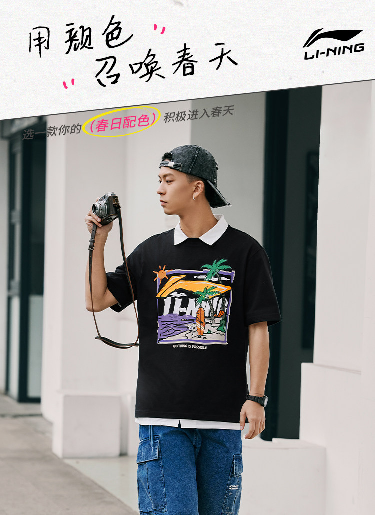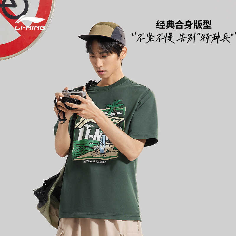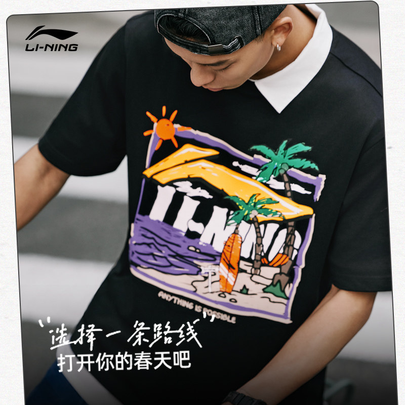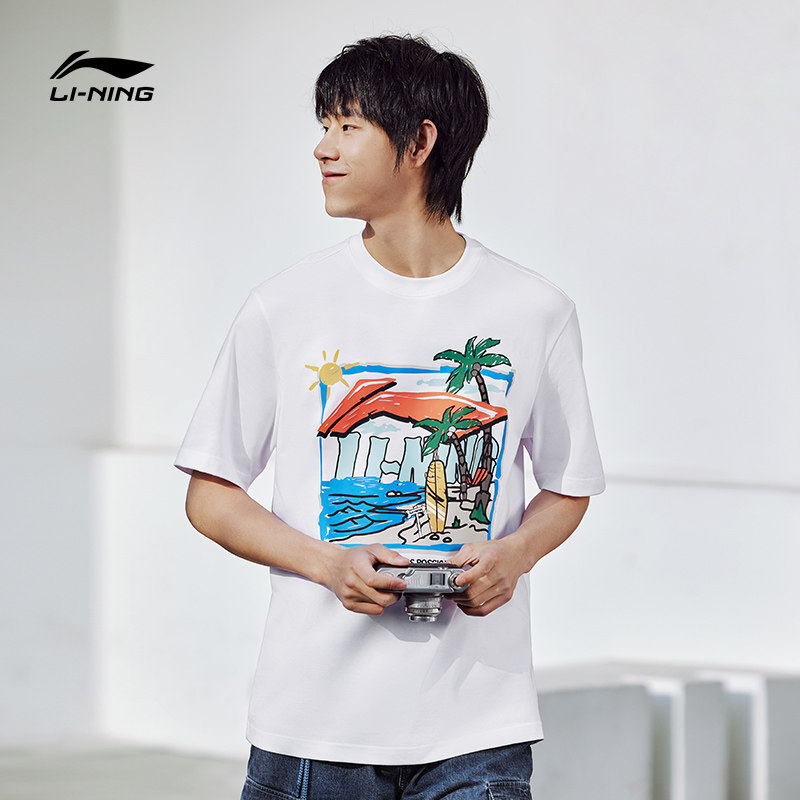 Li Ning, летняя спортивная футболка с круглым воротником для отдыха, короткий рукав, с рукавом, оверсайз