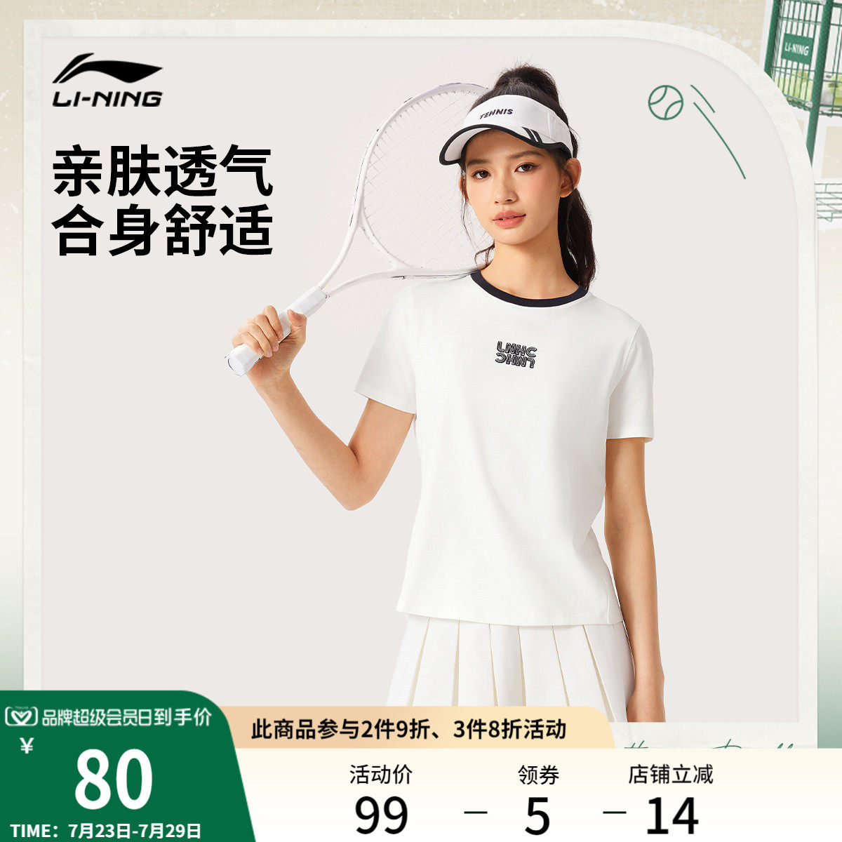 Li Ning, теннисная летняя дышащая спортивная футболка с круглым воротником для отдыха, городской стиль, короткий рукав