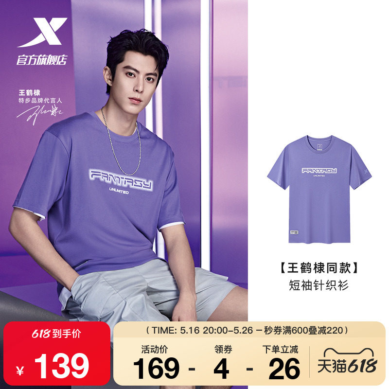 [Тот же стиль, что и у Ван Хеди] Мужская мужская футболка Xtep с короткими рукавами, новая летняя хлопковая футболка 2025 года, спортивный топ 975229010202