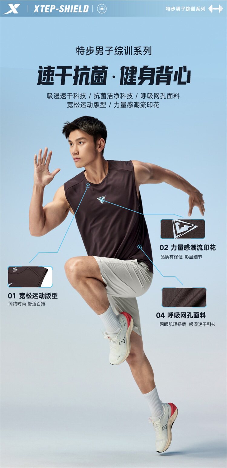 Xtep, мужская летняя майка для спортзала для тренировок без рукавов, 2025 года, для бега