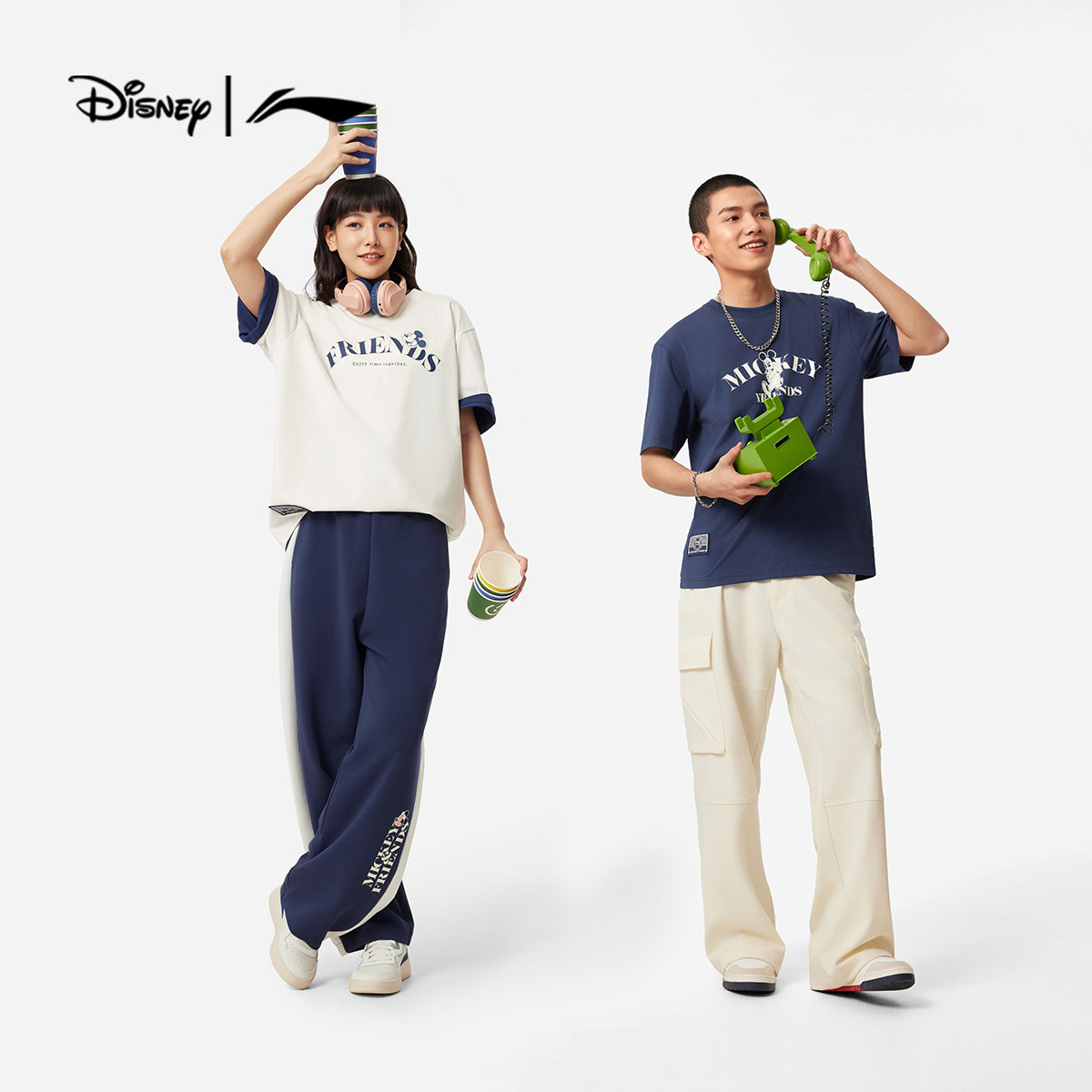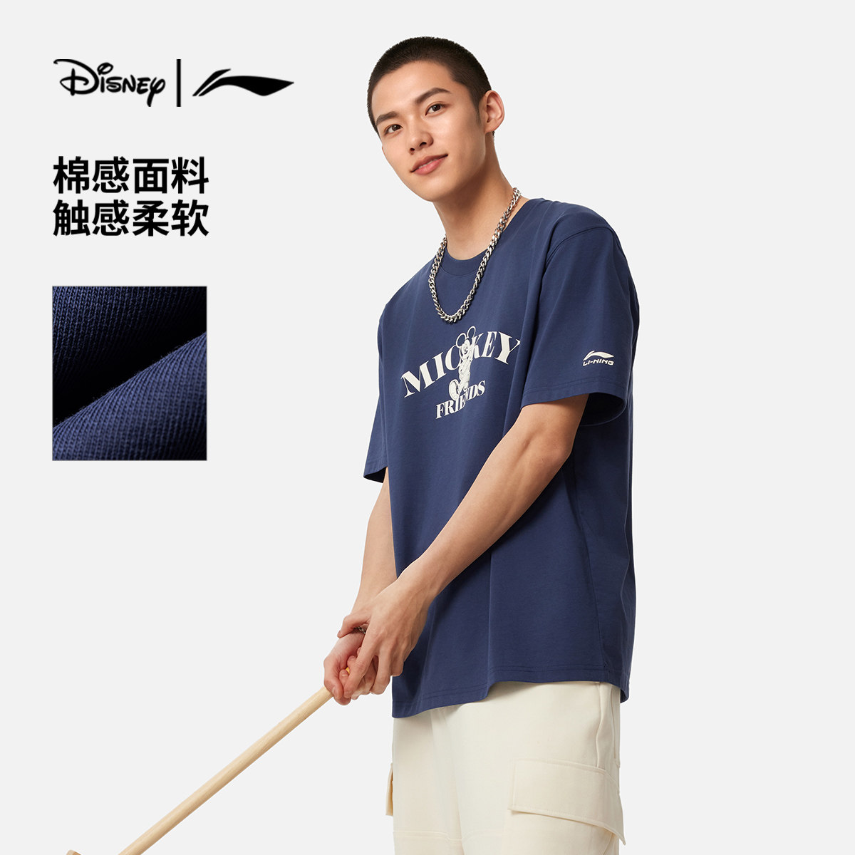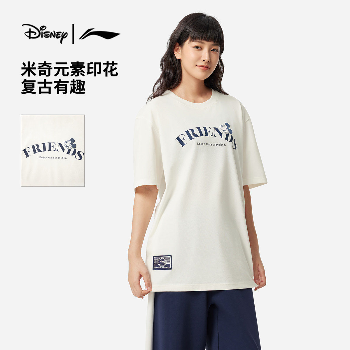 Li Ning, Дисней, футболка с коротким рукавом, трикотажный спортивный костюм для отдыха, Дисней Микки Маус