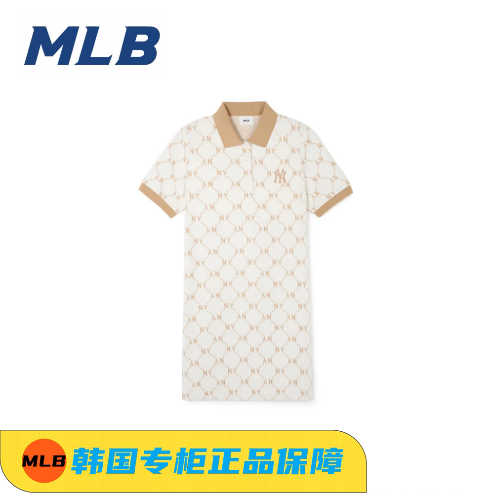 MLB, летнее платье, длинная юбка для отдыха, короткий рукав, воротник поло