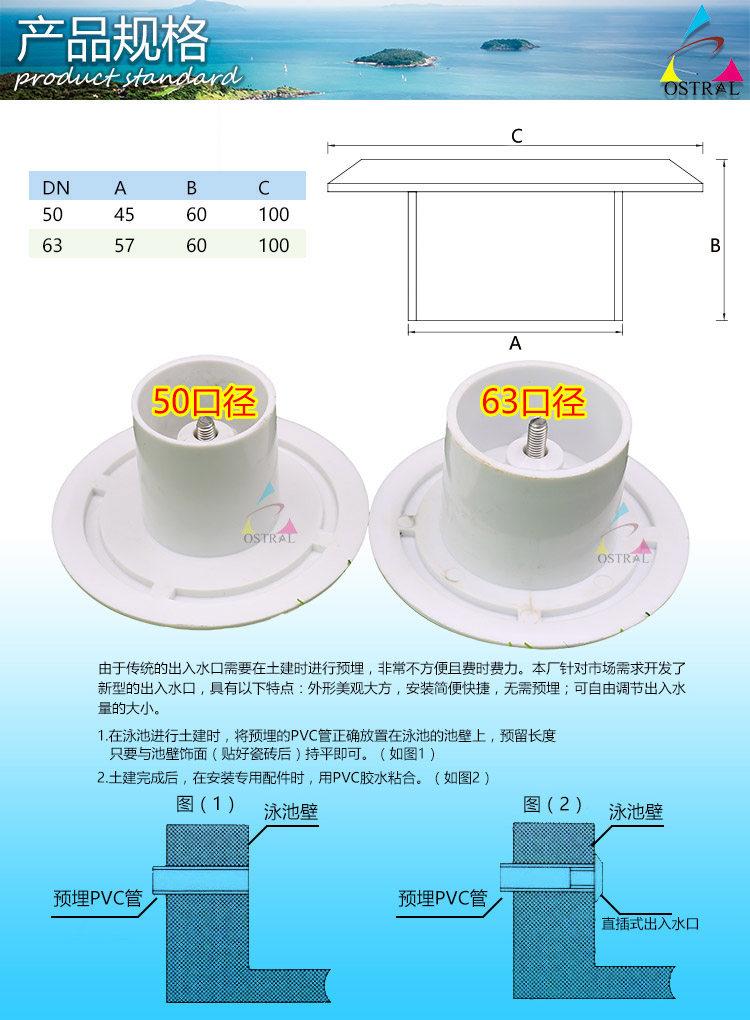 Примечание: эта модель 50“Вставляется непосредственно в 50 труб, 63”Он также непосредственно вставлен в 63 труб,