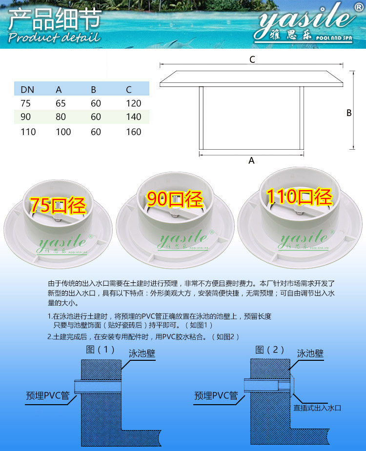 Прямая вставка 50 63 Национальные стандарты, непосредственно вставленные 1424 Внутренняя вставка 1424 тканевая вода рот 1424 в бассейне -indoor