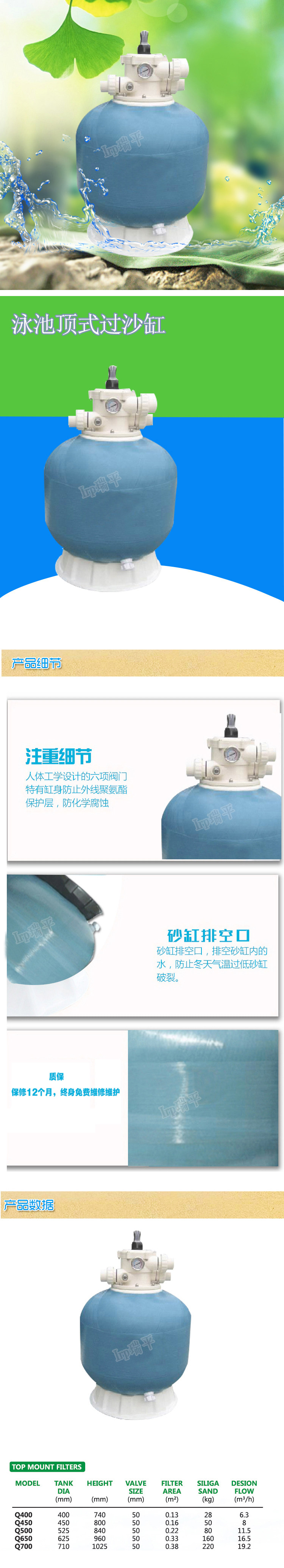 1. Усовершенствованная плавательная оболочка из полиэстера, сферическая структура, запутанная стеклянной волокном, делает песочный бак более сильной, а поверхность не -токсична.