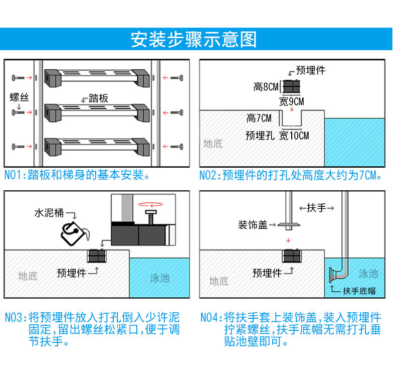 Бассейн, нескользящие педали из нержавеющей стали, лестница, делается под заказ, увеличенная толщина