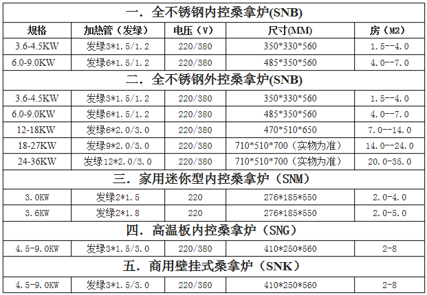 - 220 В 3,6 кВт внутренняя печь.