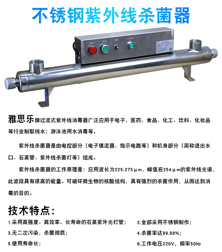 GOETAS Лампа для стерилизации из нержавеющей стали, бассейн, антибактериальное ультрафиолетовое оборудование, 200W