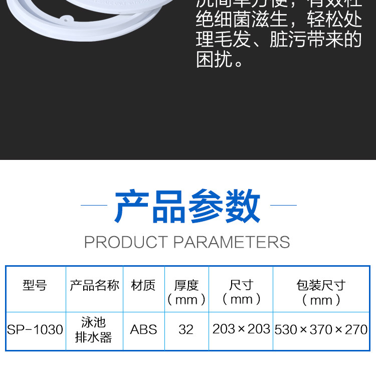 AQI Antyglag Bool Основной дренажный бассейн в нижней части дренатора с круглым дренатором SP-1030