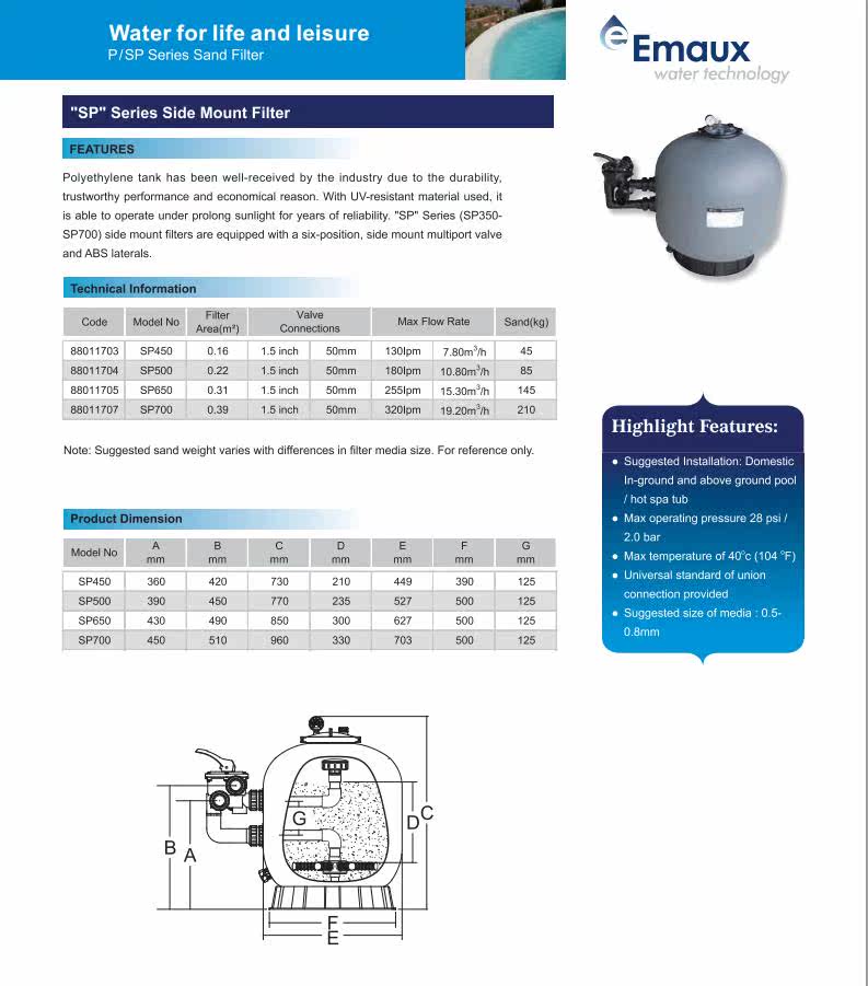 EMAUX Yiwanshi P Series Series Bool Bool Filtering Home Home Outdoor Hot Spring Side Plaalte Sand Tank