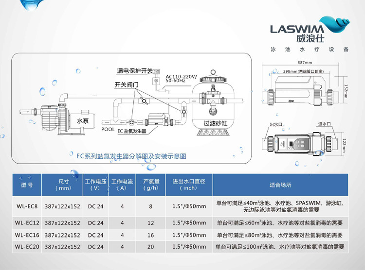 Laswim Welang Shi EC серия серии соли хлорида генератор бассейн у бассейна детская стерилизация стерилизация младенца и электролитическая система хлора хлора