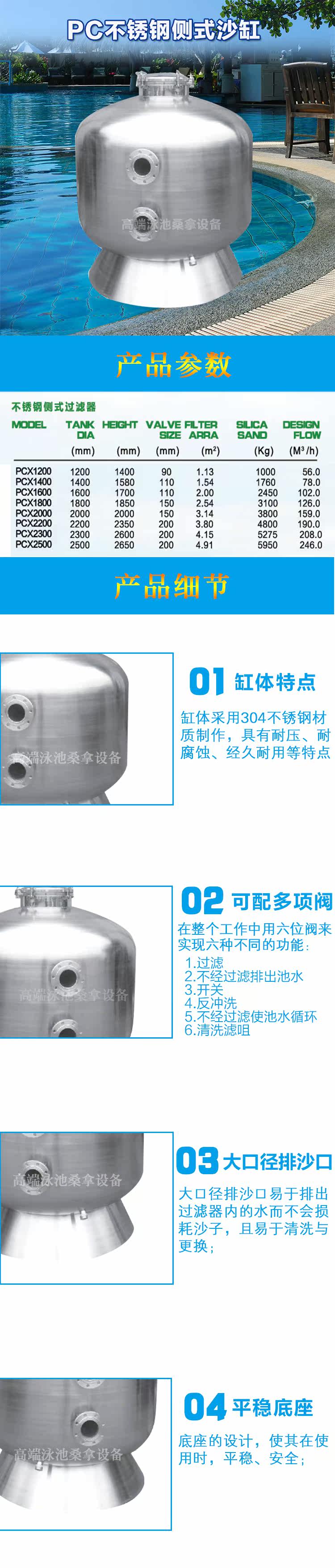 Бассейн из нержавеющей стали песчаной цилиндр PCX-20000 Фильтр Pwalker боковой песчаный цилиндр очиститель песчаной воды