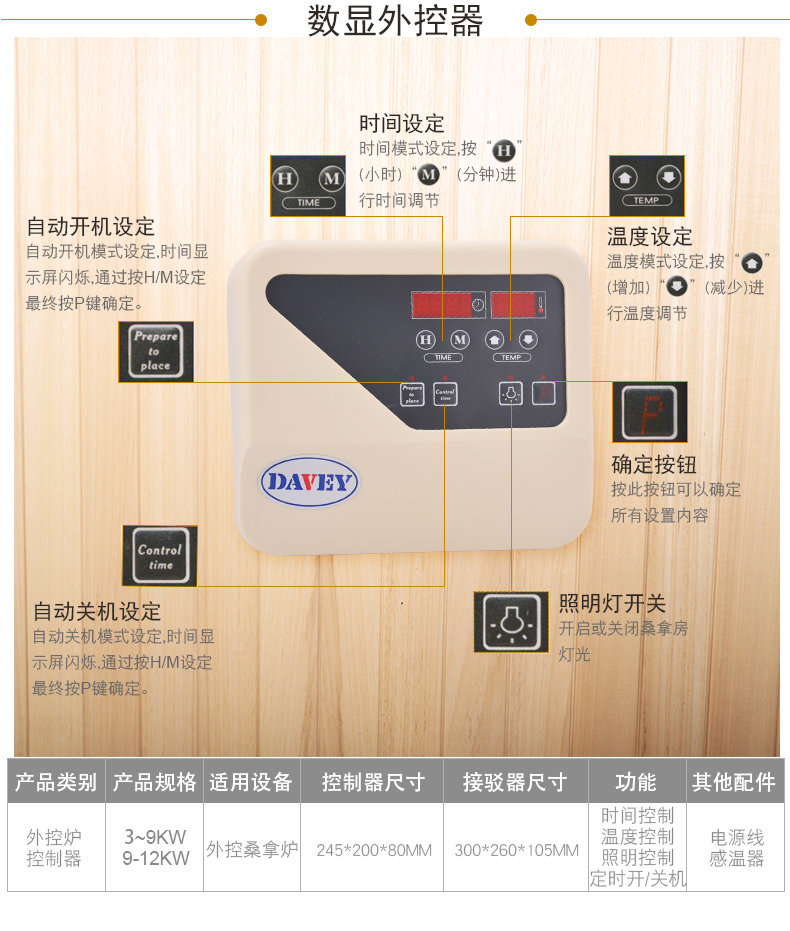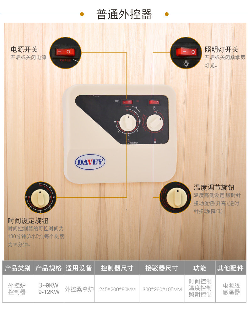 Номер печи сауны, показывающий внешний контроллер, чтобы сделать температуру световой лампы сухой пародовой
