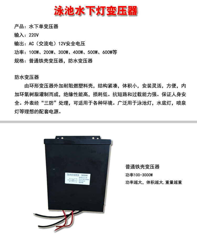 Подводный бассейн, автоматический безопасный трансформатор, водонепроницаемое оборудование, 12v